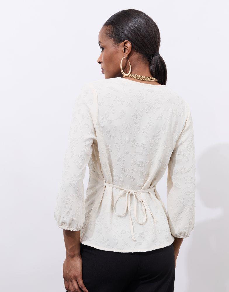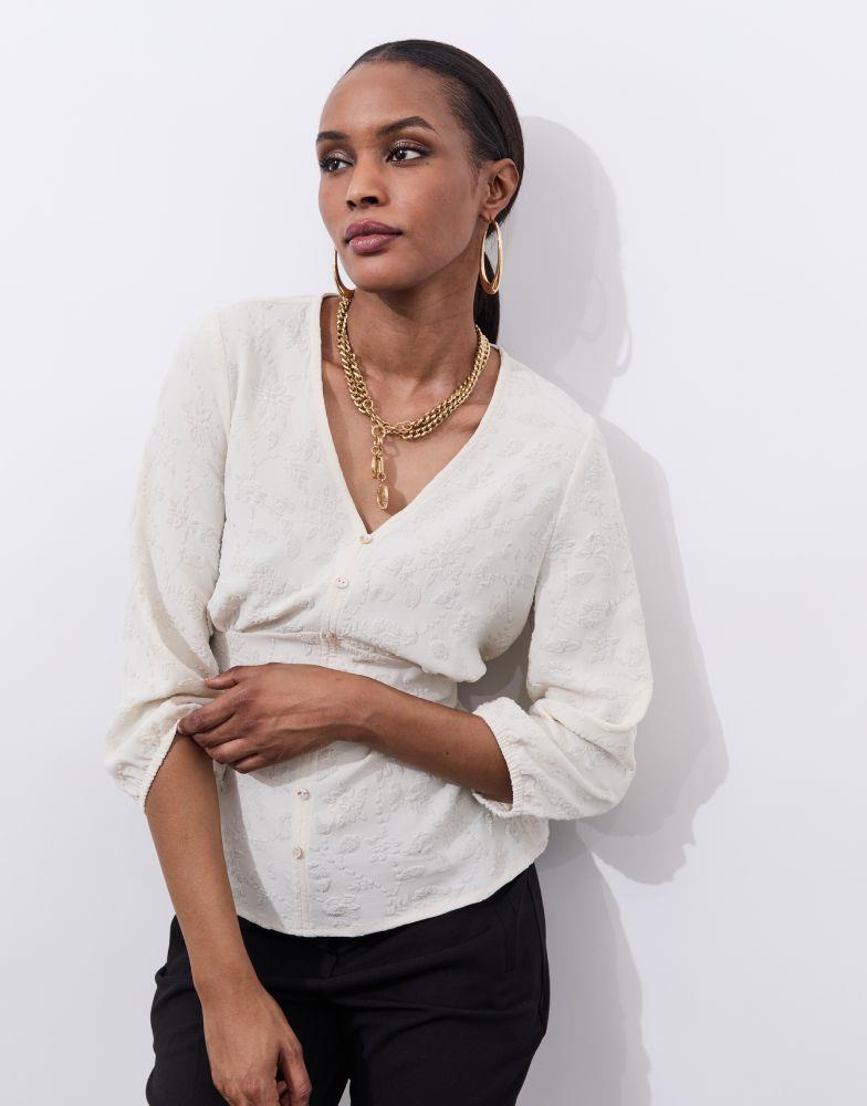 Détails produit : Blouse manches 3/4 unie, decolleté en V et manches 3/4. Couleur : ECRU