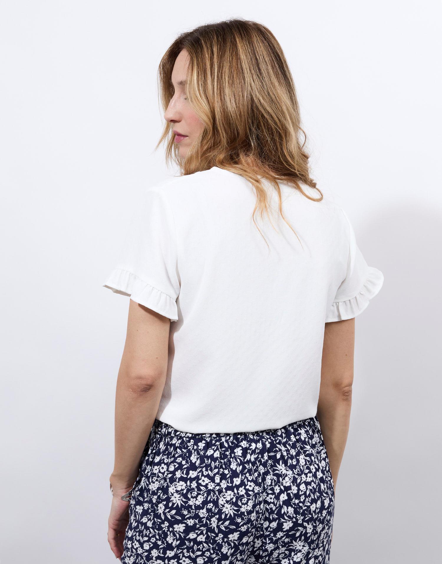 Détails produit : Blouse manches courtes unie, decolleté en V et manches courtes. Couleur : BLANC