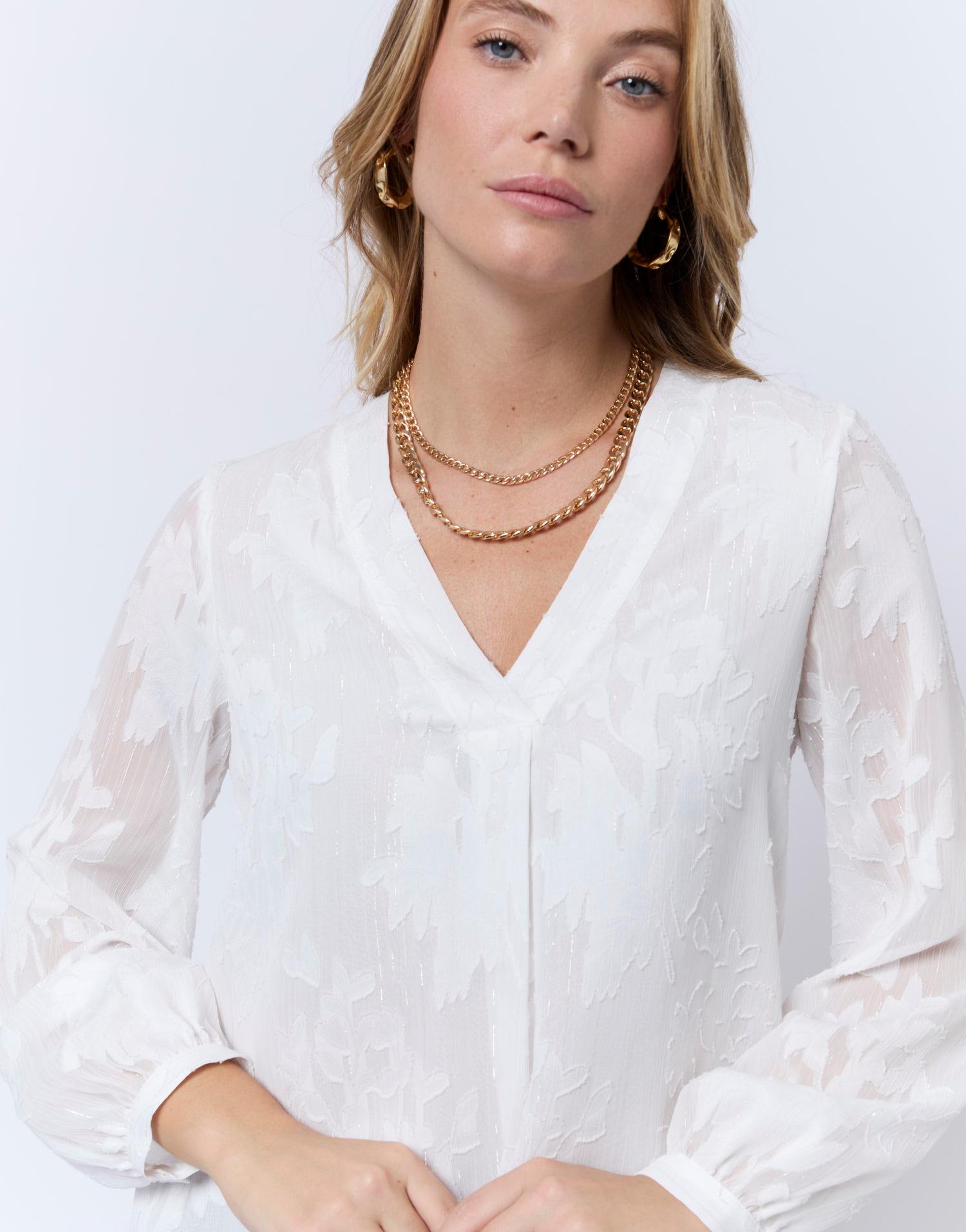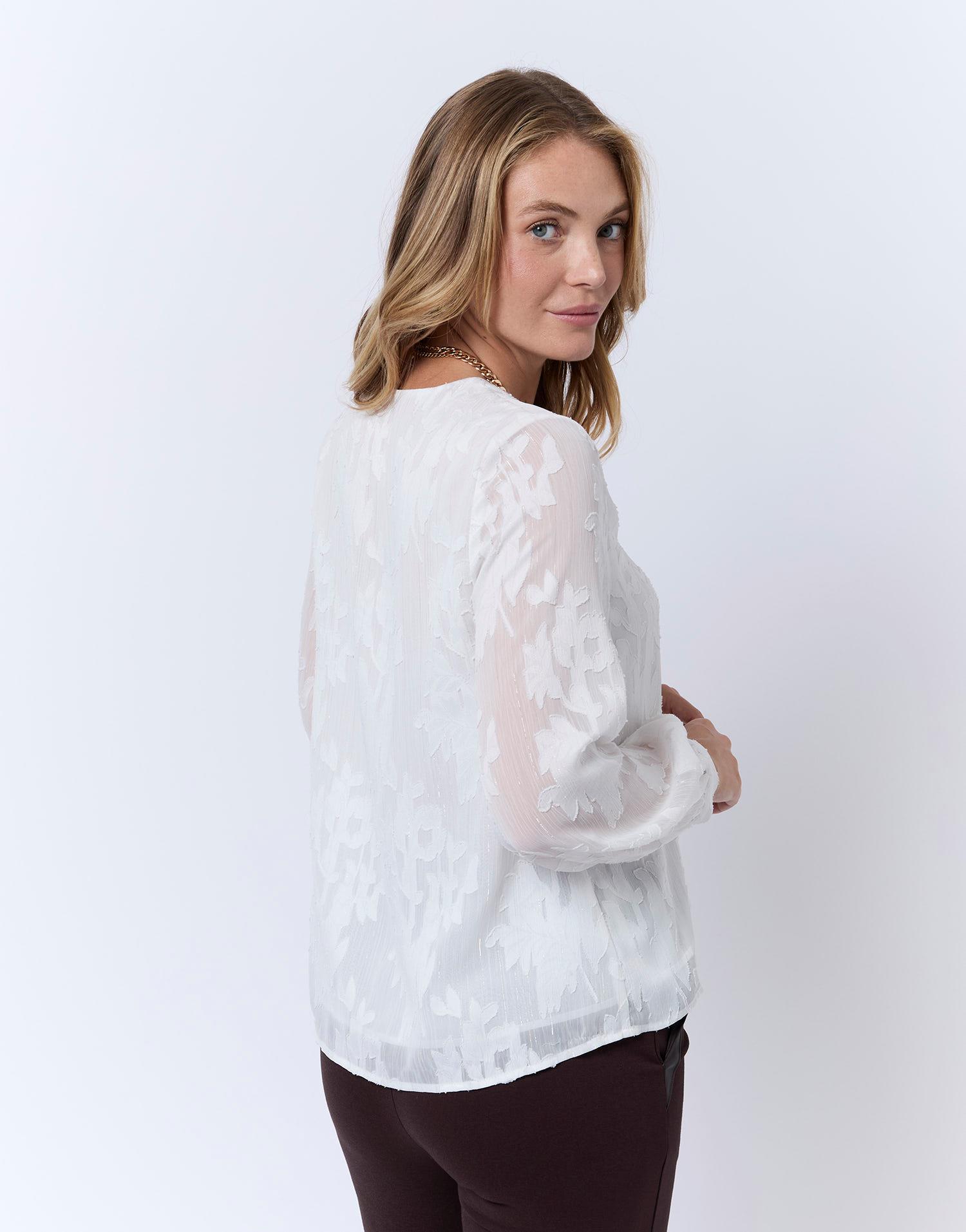 Détails produit : Blouse manches longues unie, decolleté en V et manches longues. Couleur : ECRU