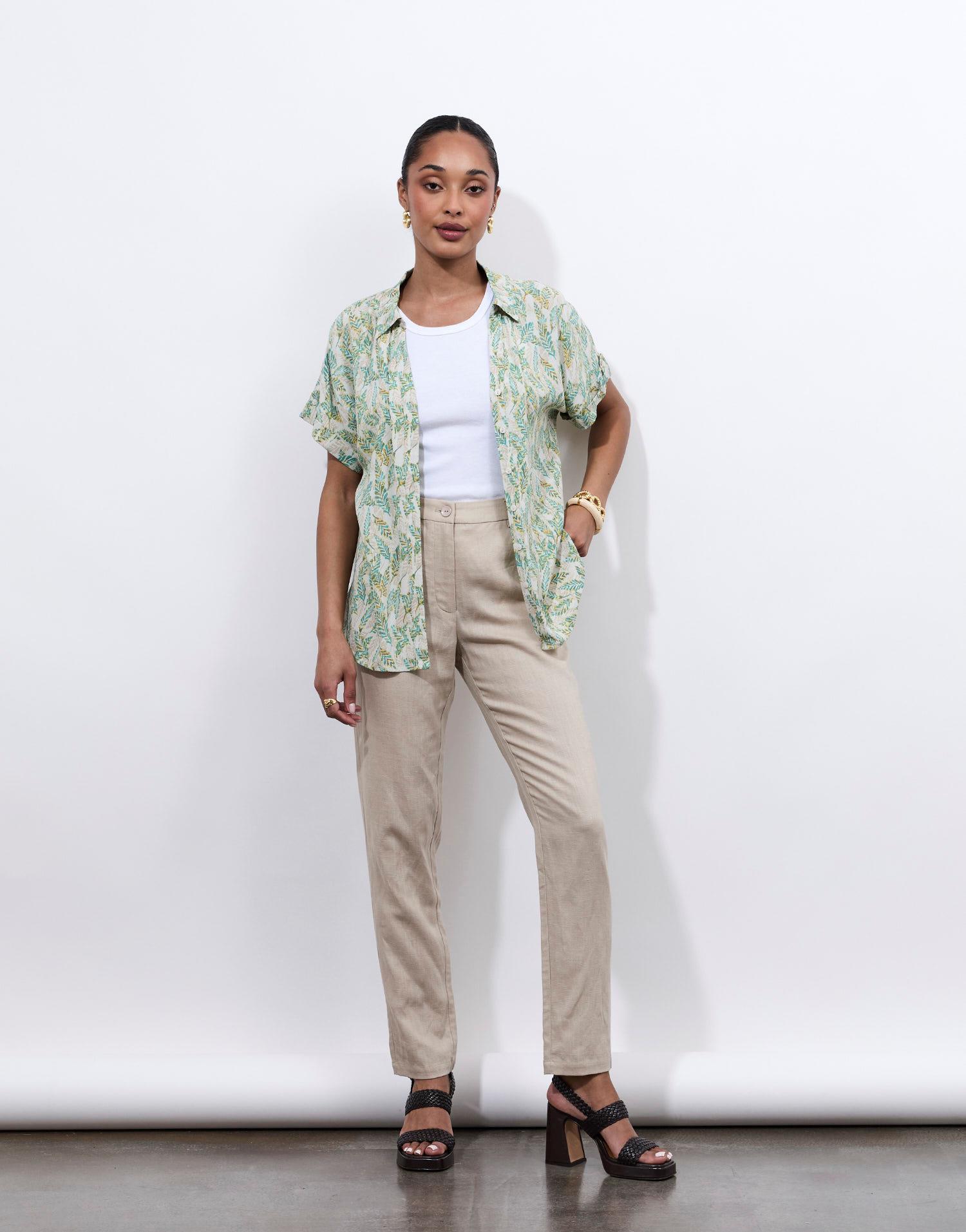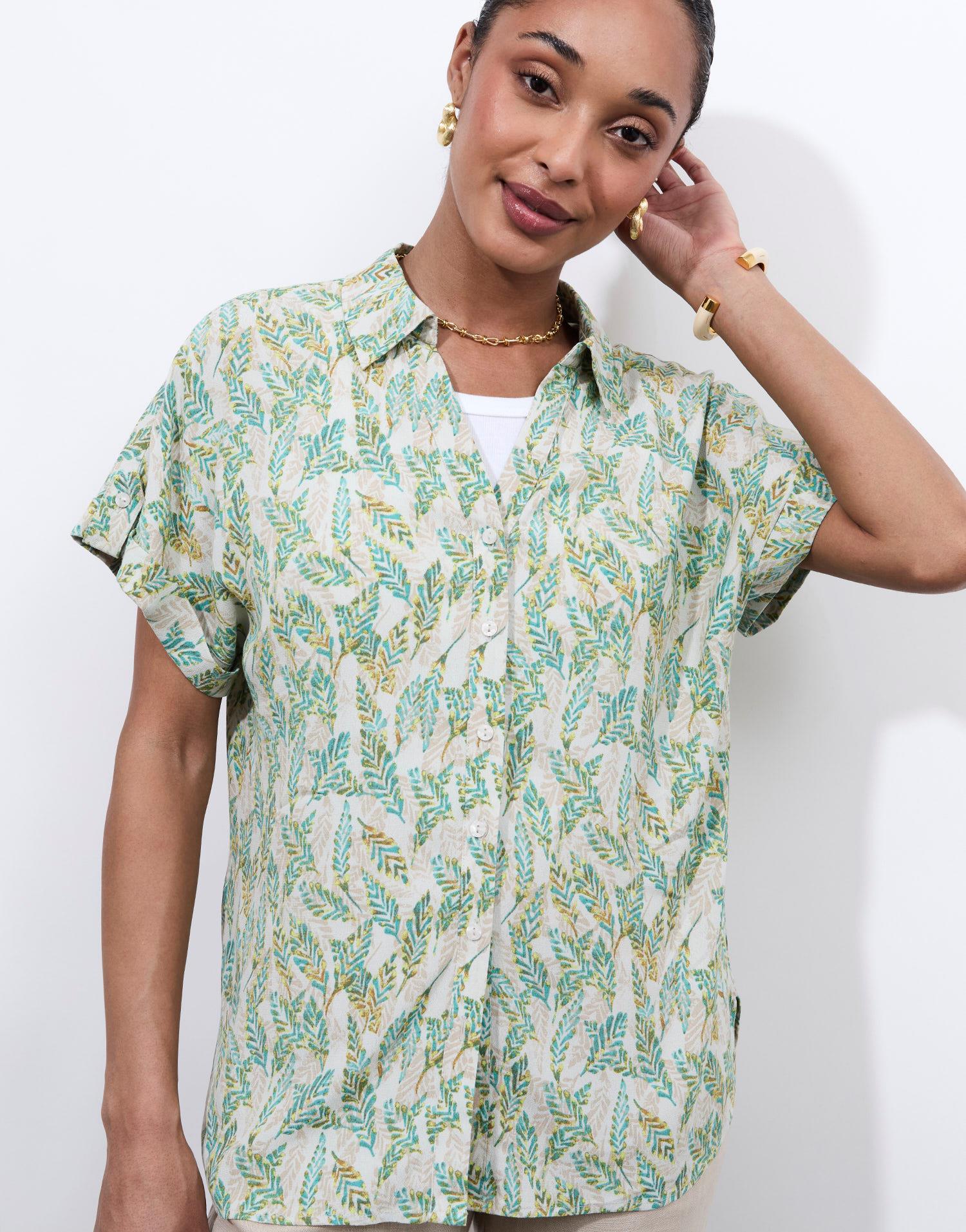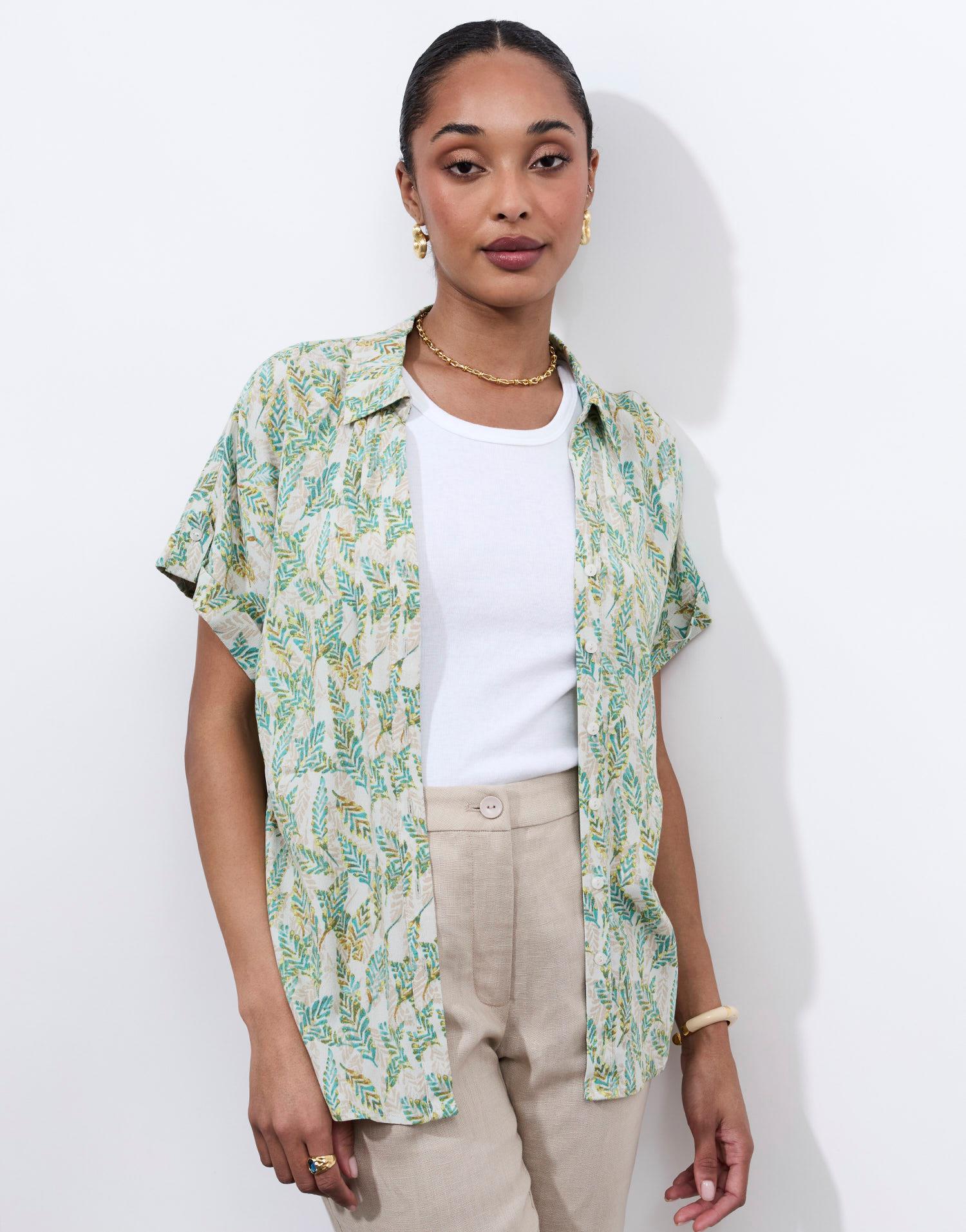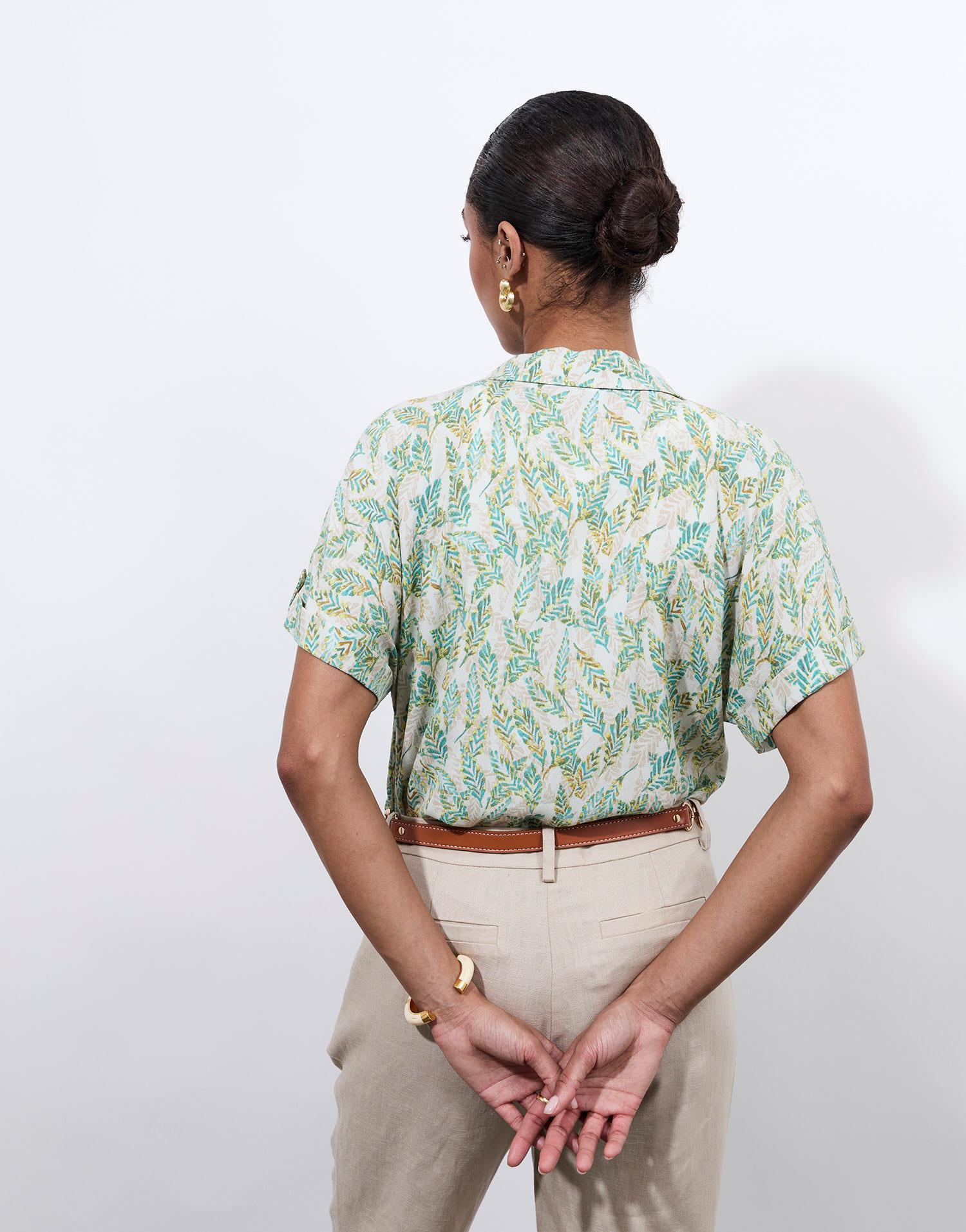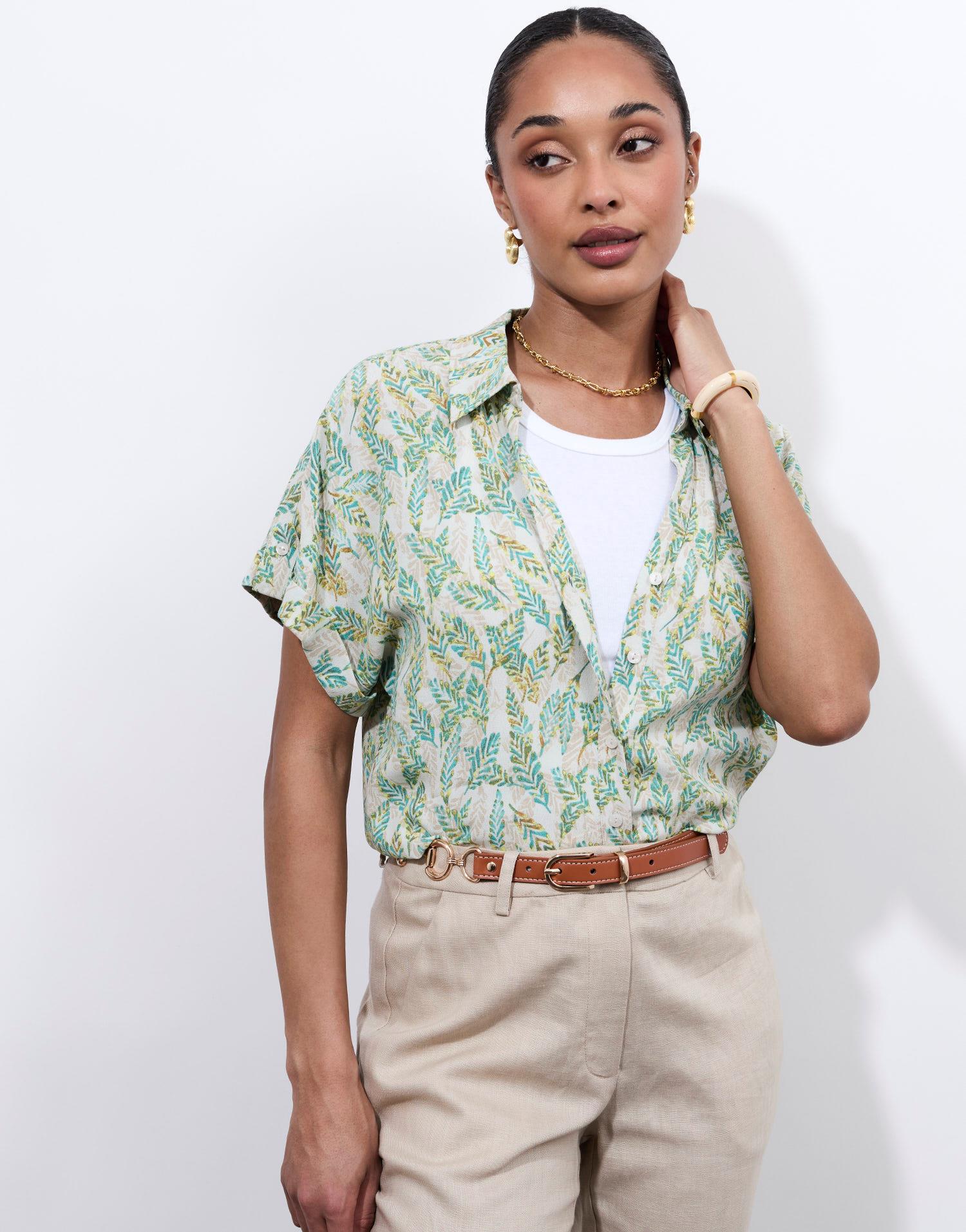 Détails produit : Chemisier manches longues imprimé, col chemisier et manches longues. Couleur : VERT PALE