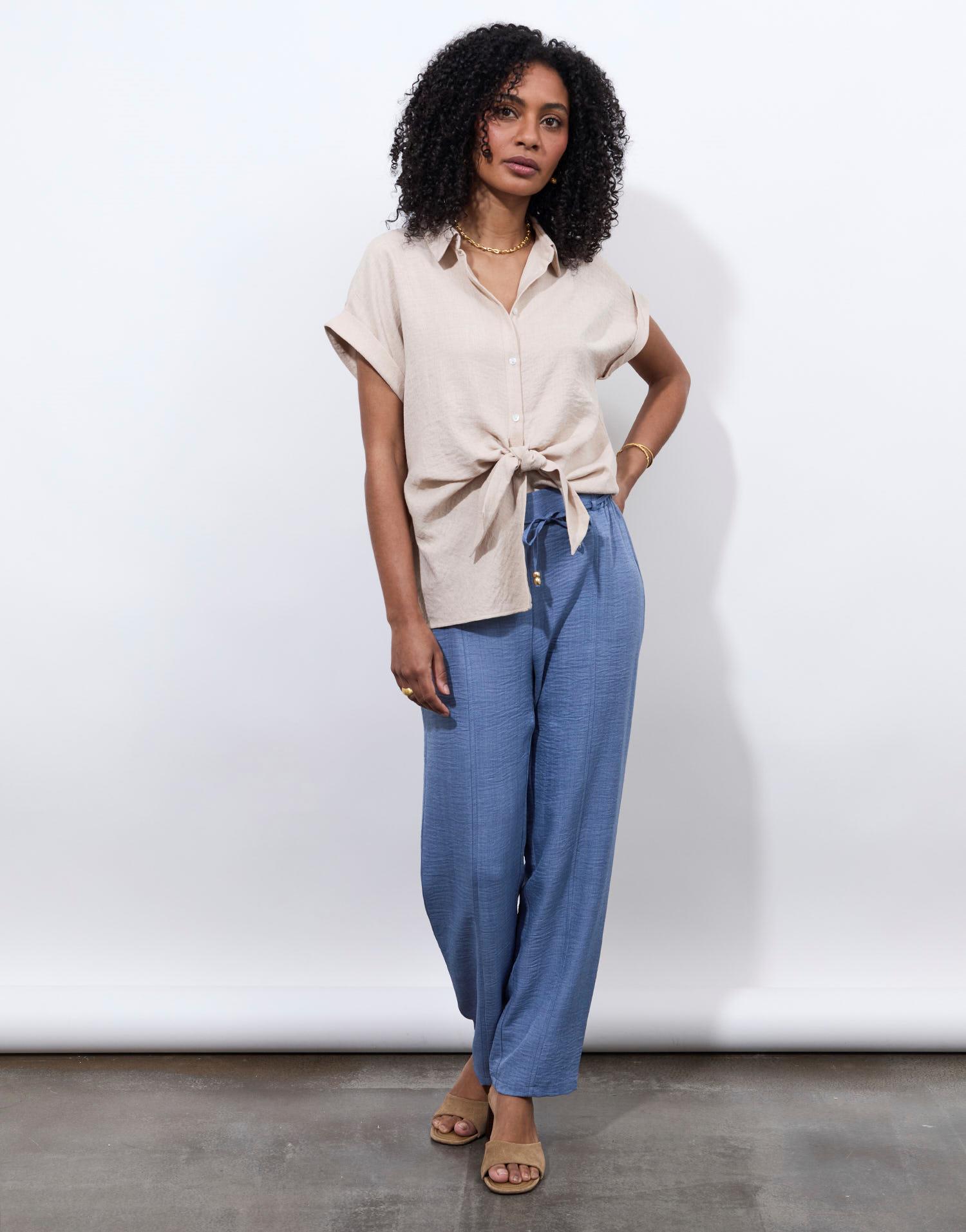 Détails produit : Blouse manches courtes unie, decolleté en V et manches courtes. Couleur : BEIGE
