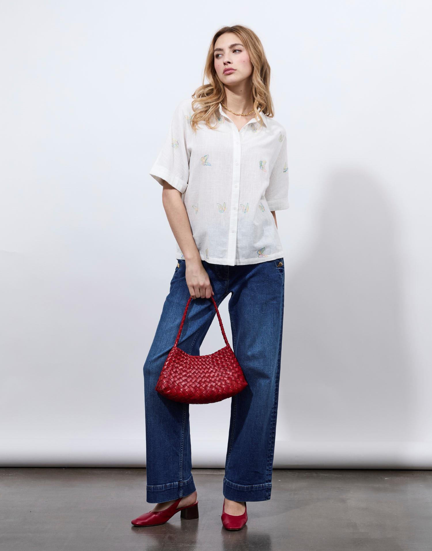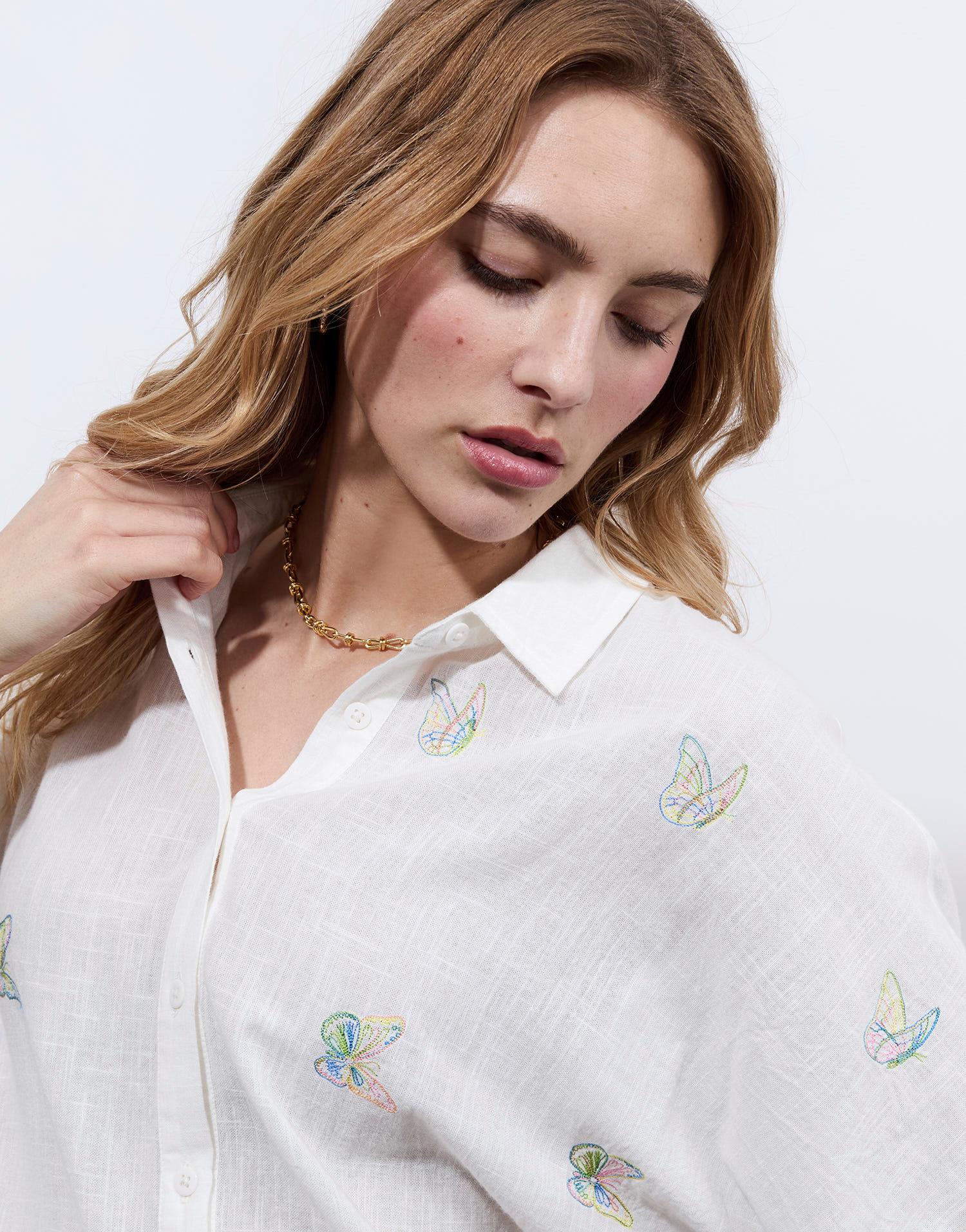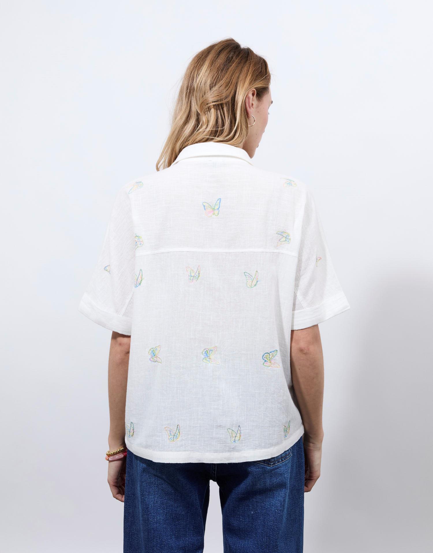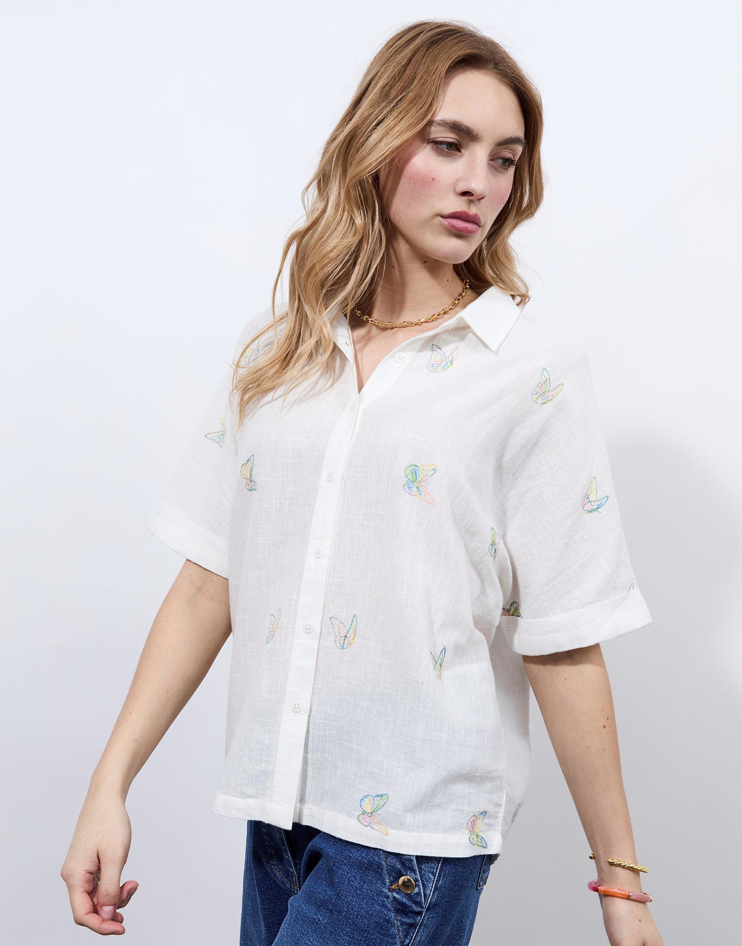 Détails produit : Chemisier manches courtes imprimé, col chemisier et manches courtes. Couleur : ECRU