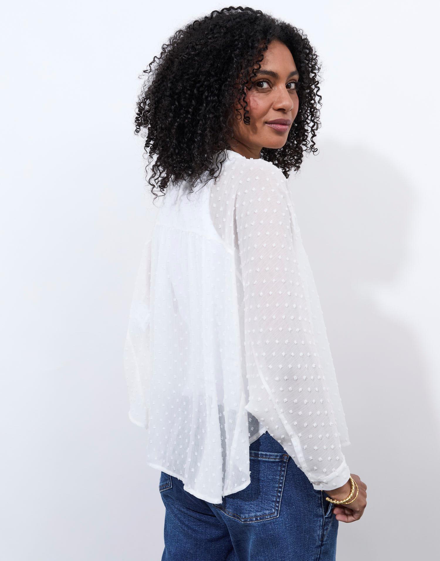 Détails produit : Chemisier manches chauves-souris uni, encolure arrondie et manches chauves-souris. Couleur : BLANC