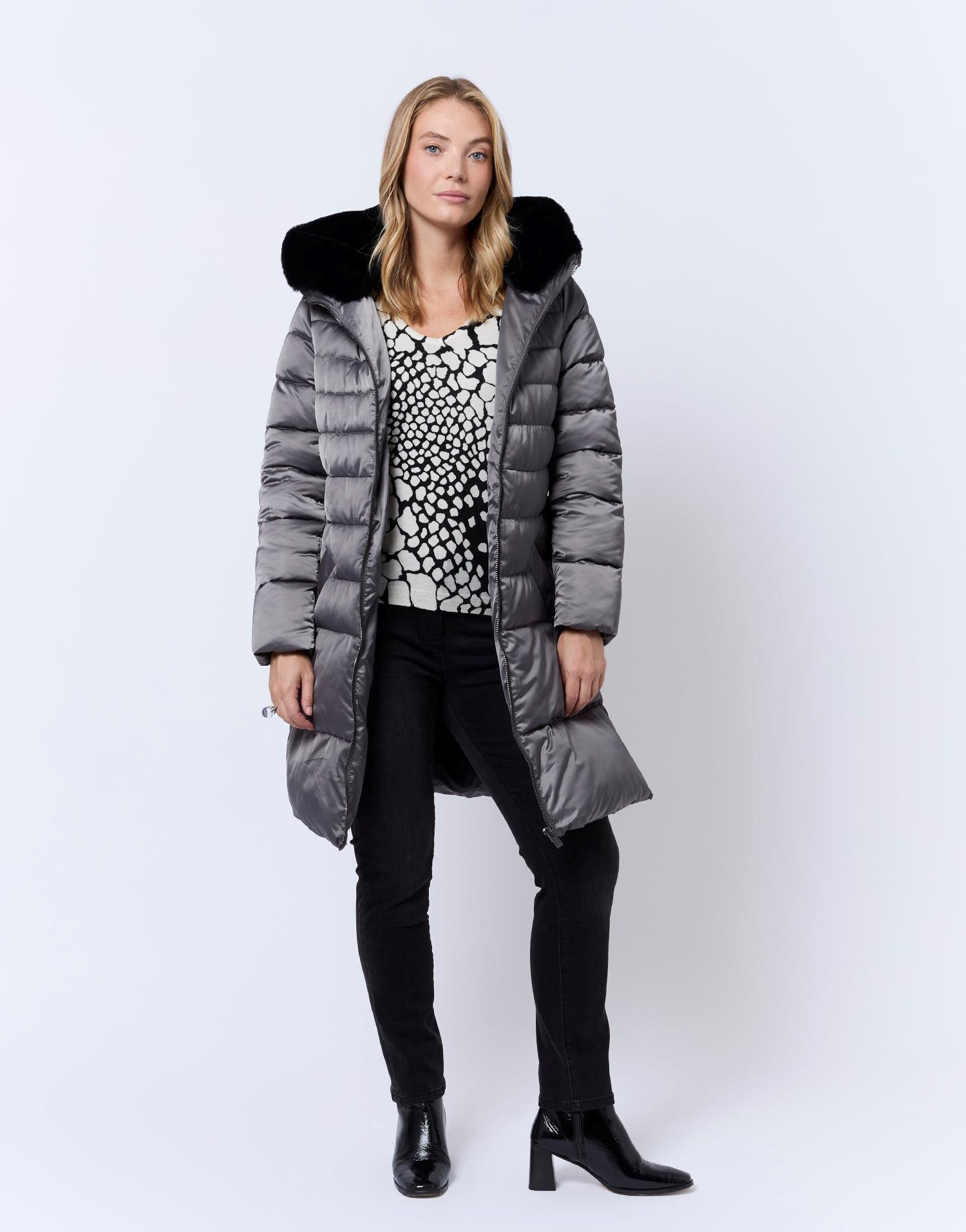Détails produit : Doudoune unie, Col simple. Couleur : GRIS