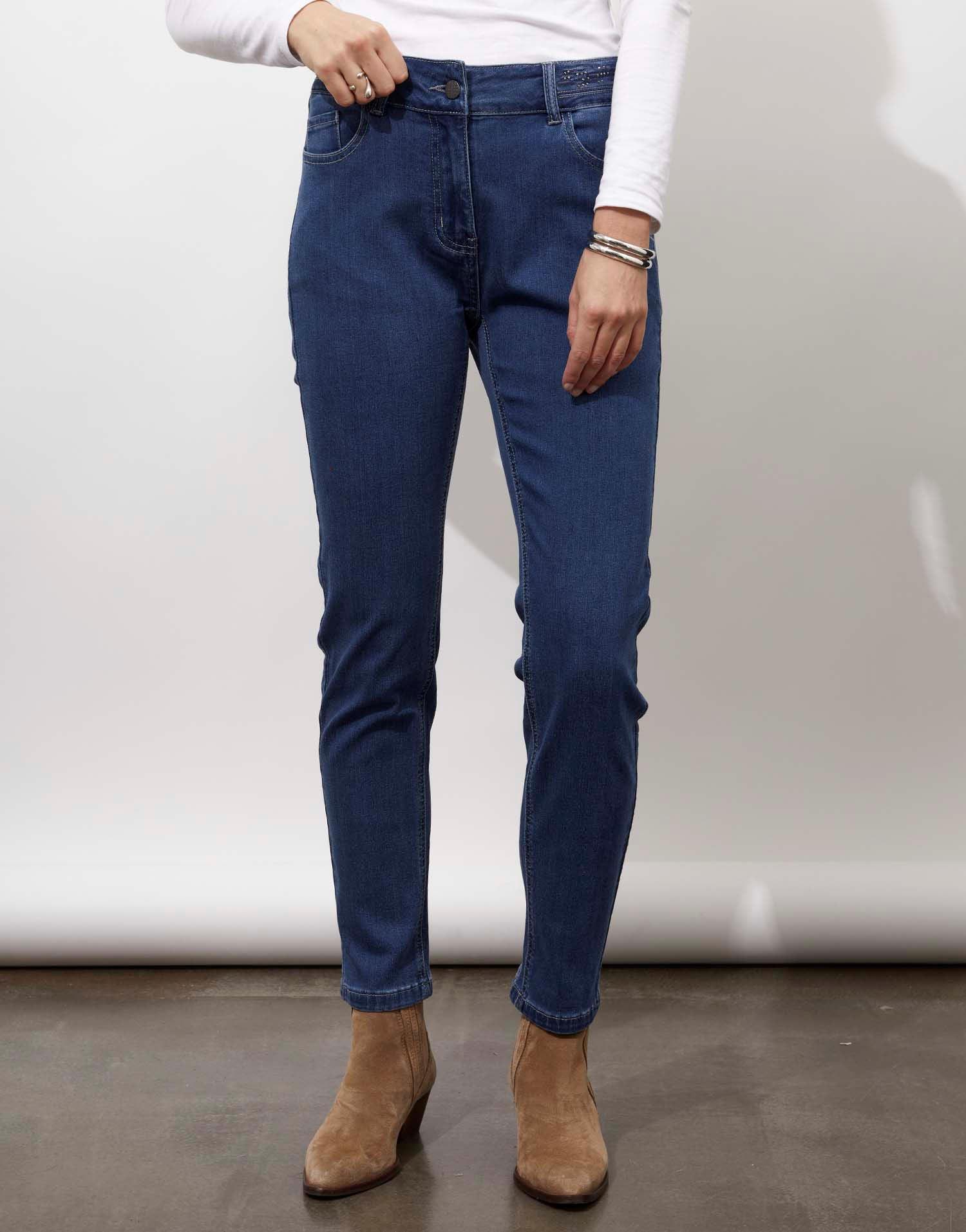 Détails produit : Jean 7/8 slim, slim et 5 poches. Couleur : BLEU