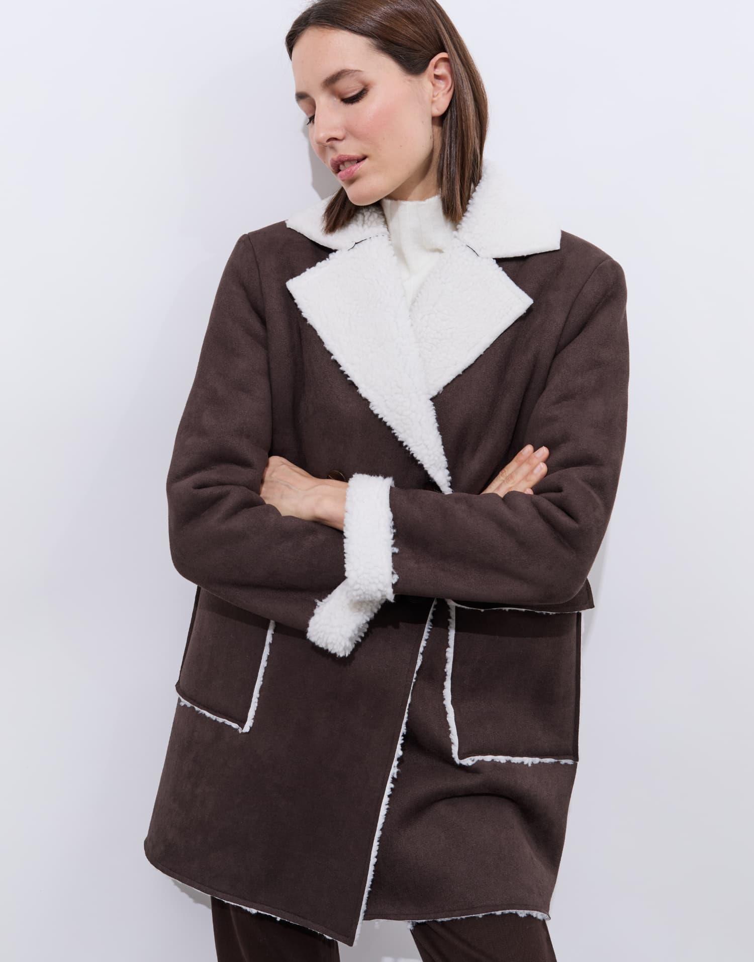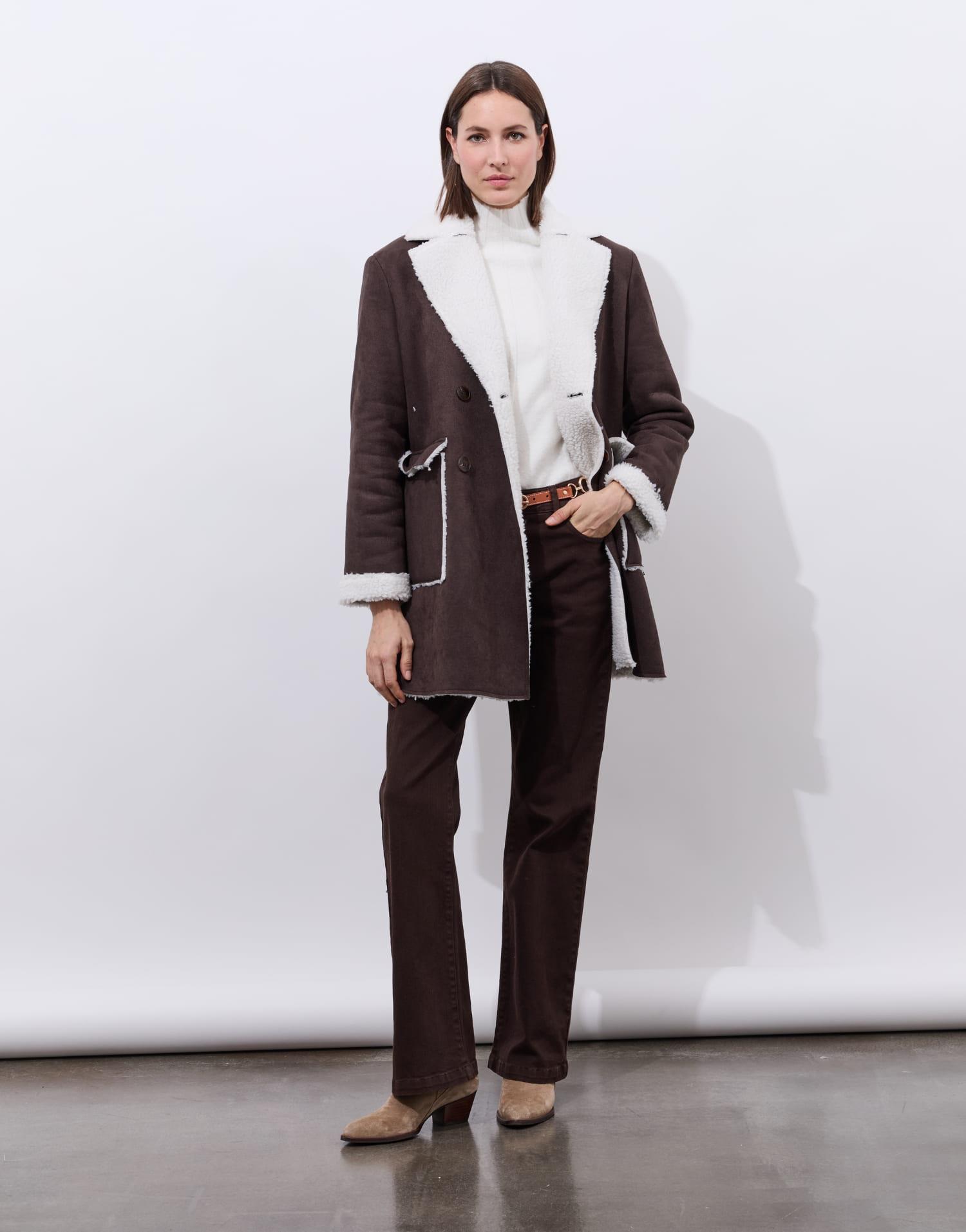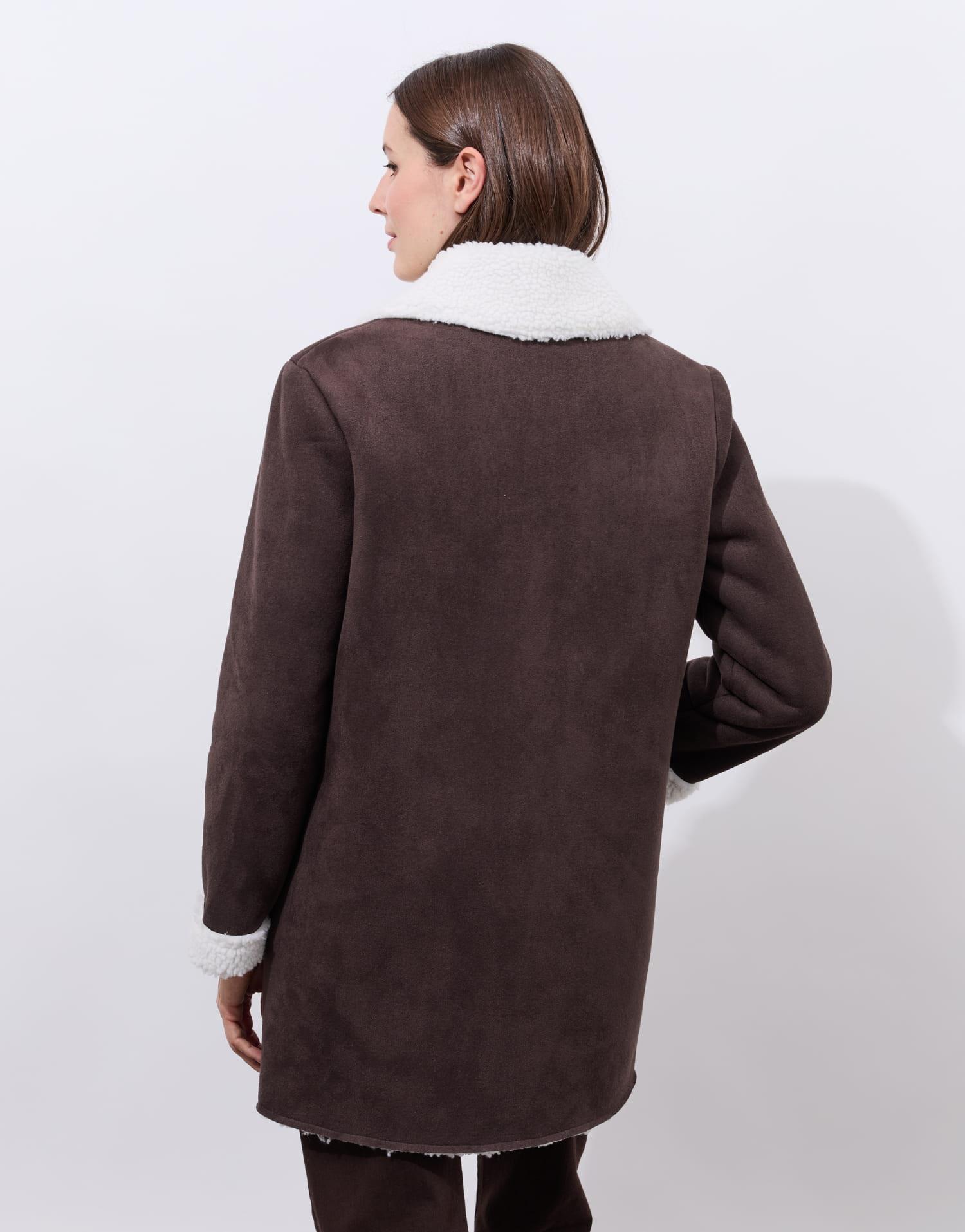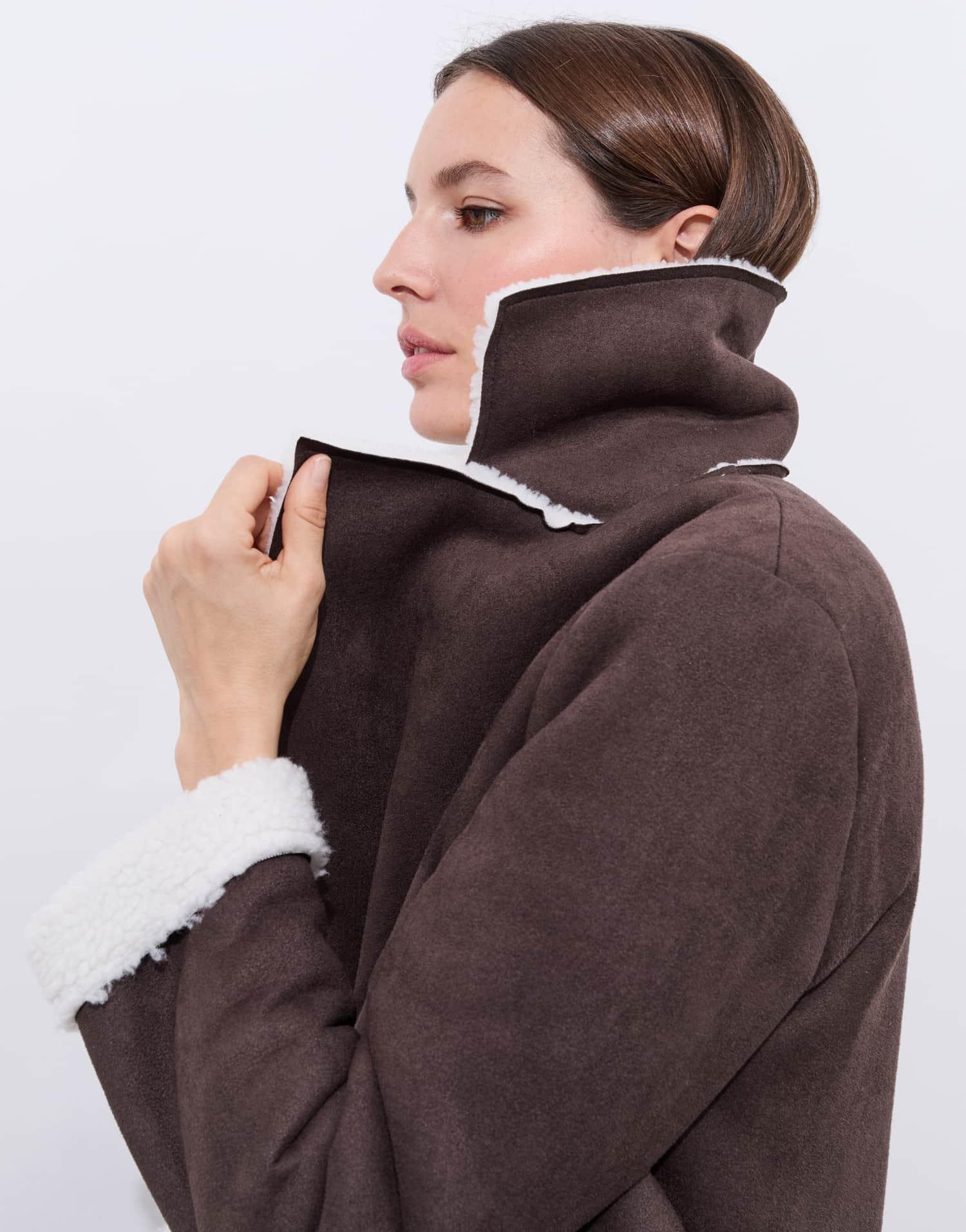 Détails produit : Caban uni, col tailleur. Couleur : MARRON