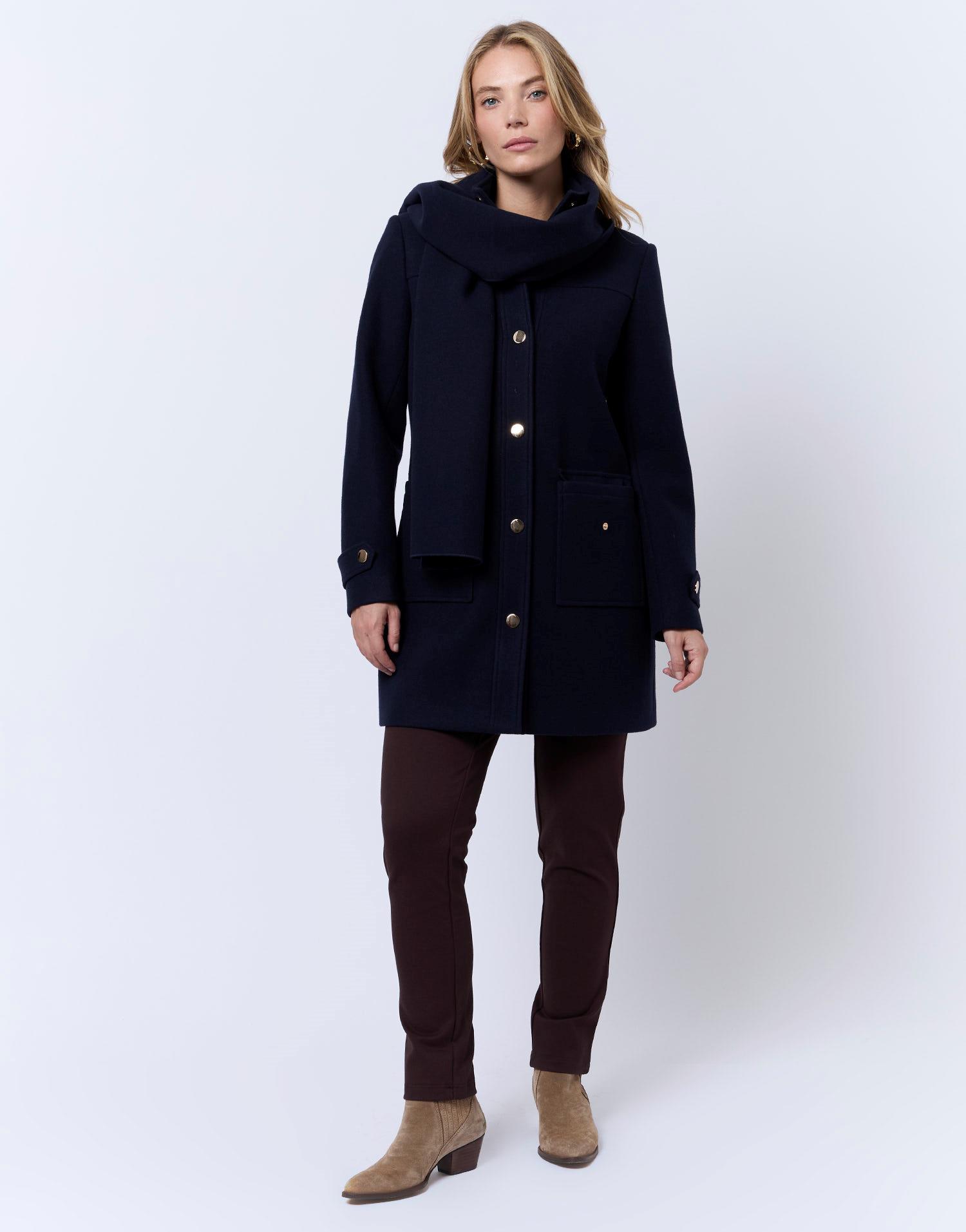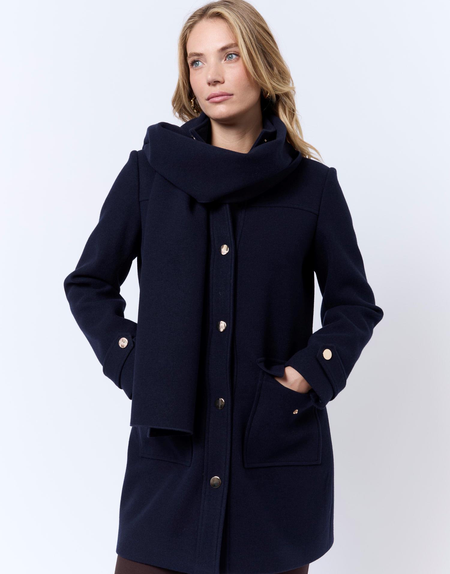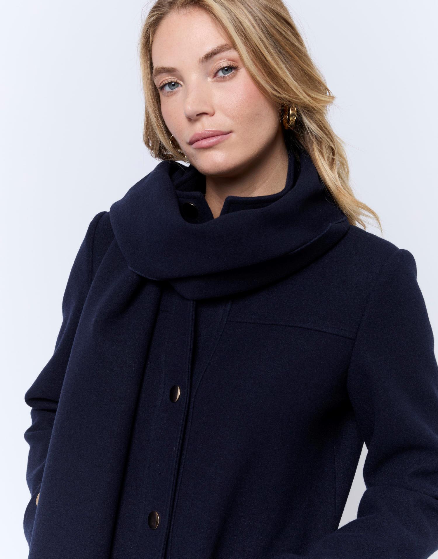 Détails produit : Manteau uni, col officier. Couleur : MARINE