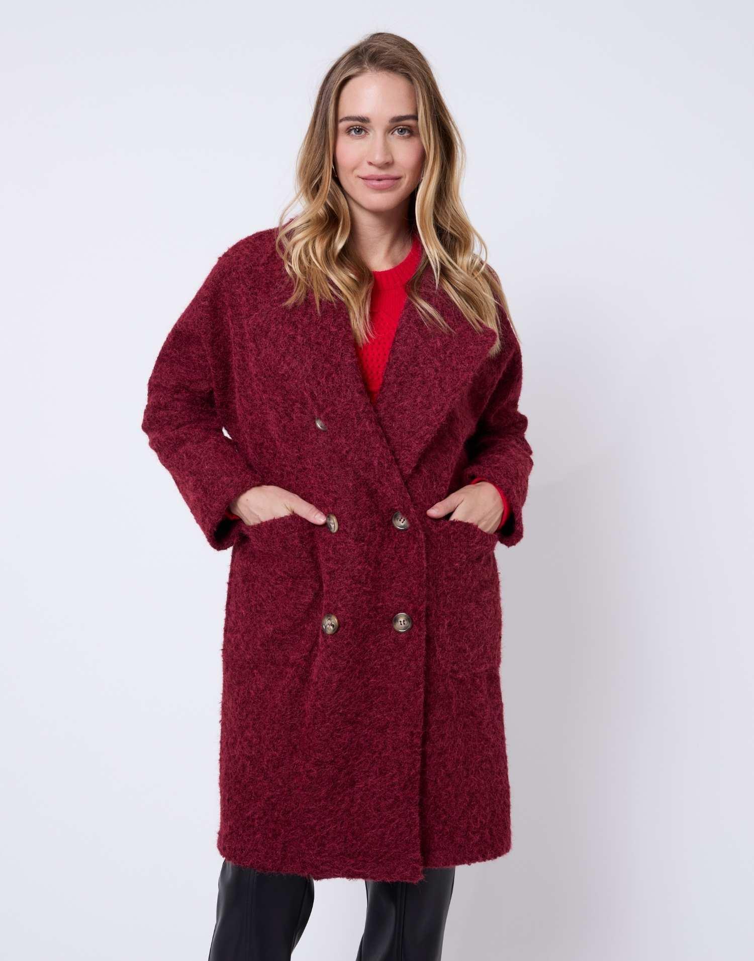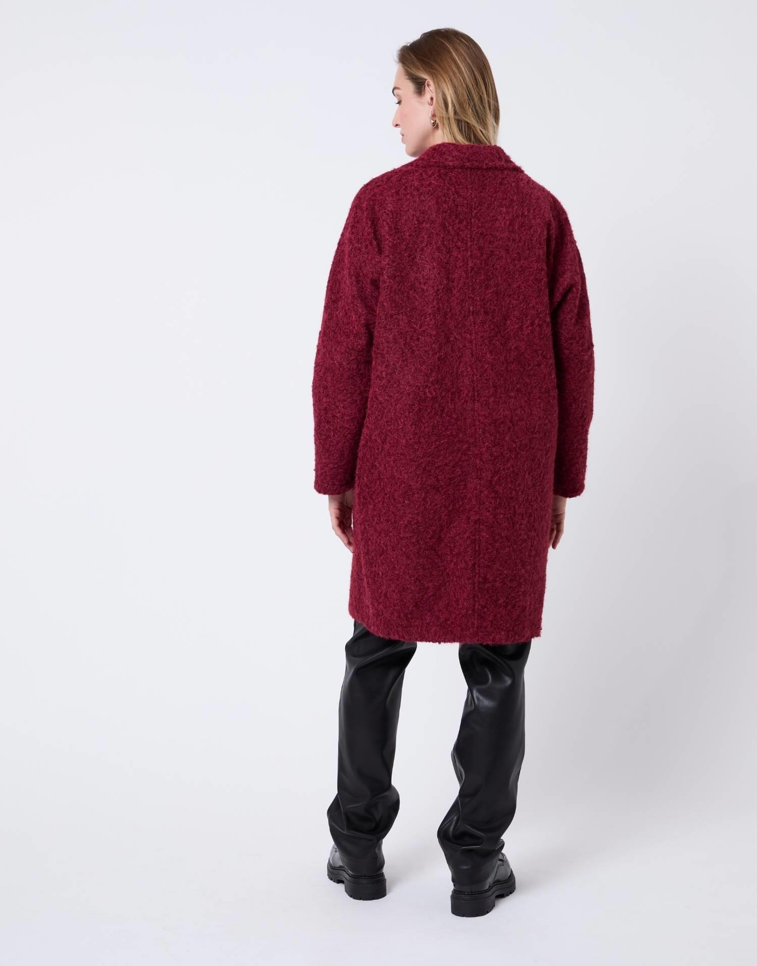 Détails produit : Manteau uni, col tailleur. Couleur : BORDEAUX