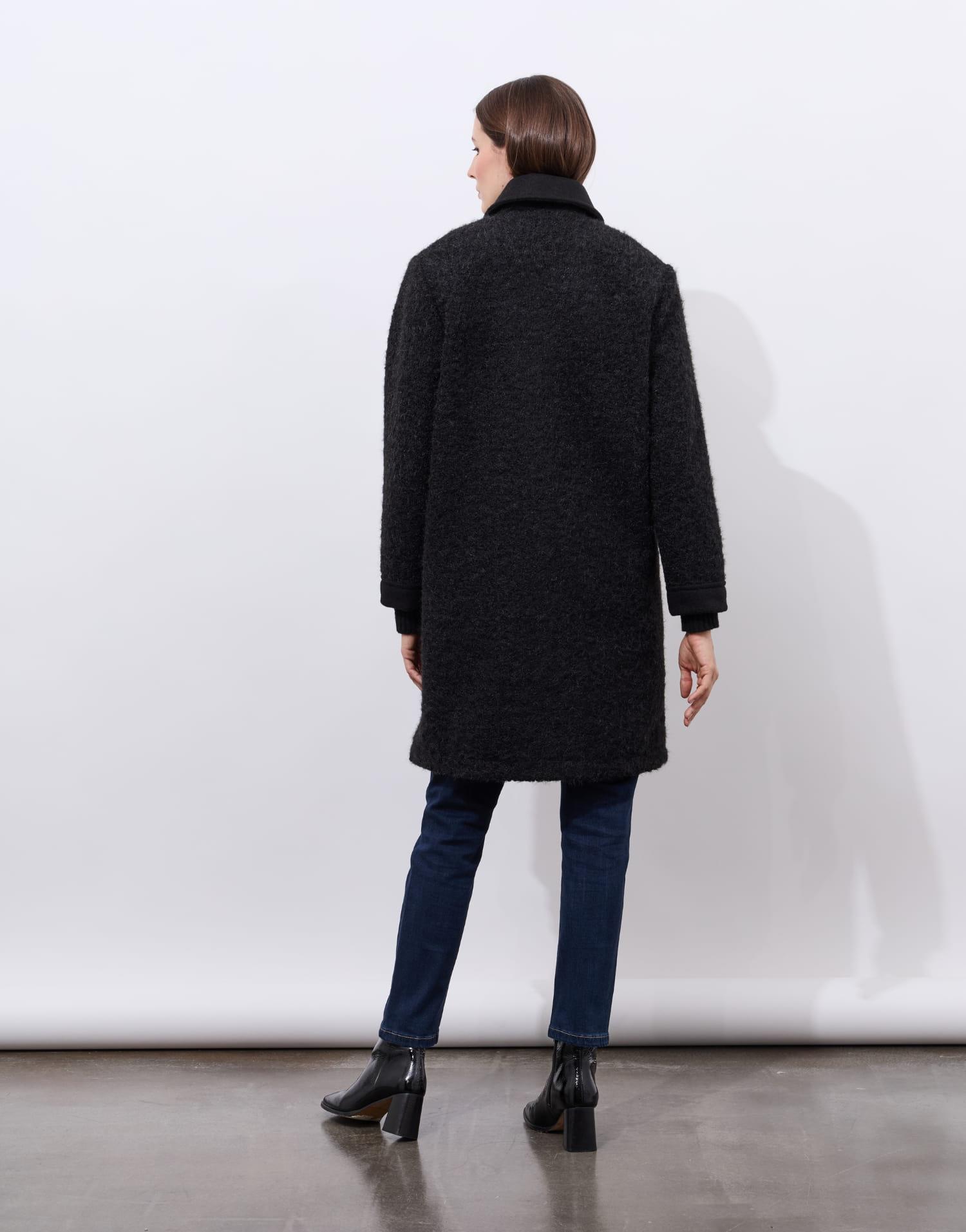 Détails produit : Manteau uni, Col simple. Couleur : NOIR