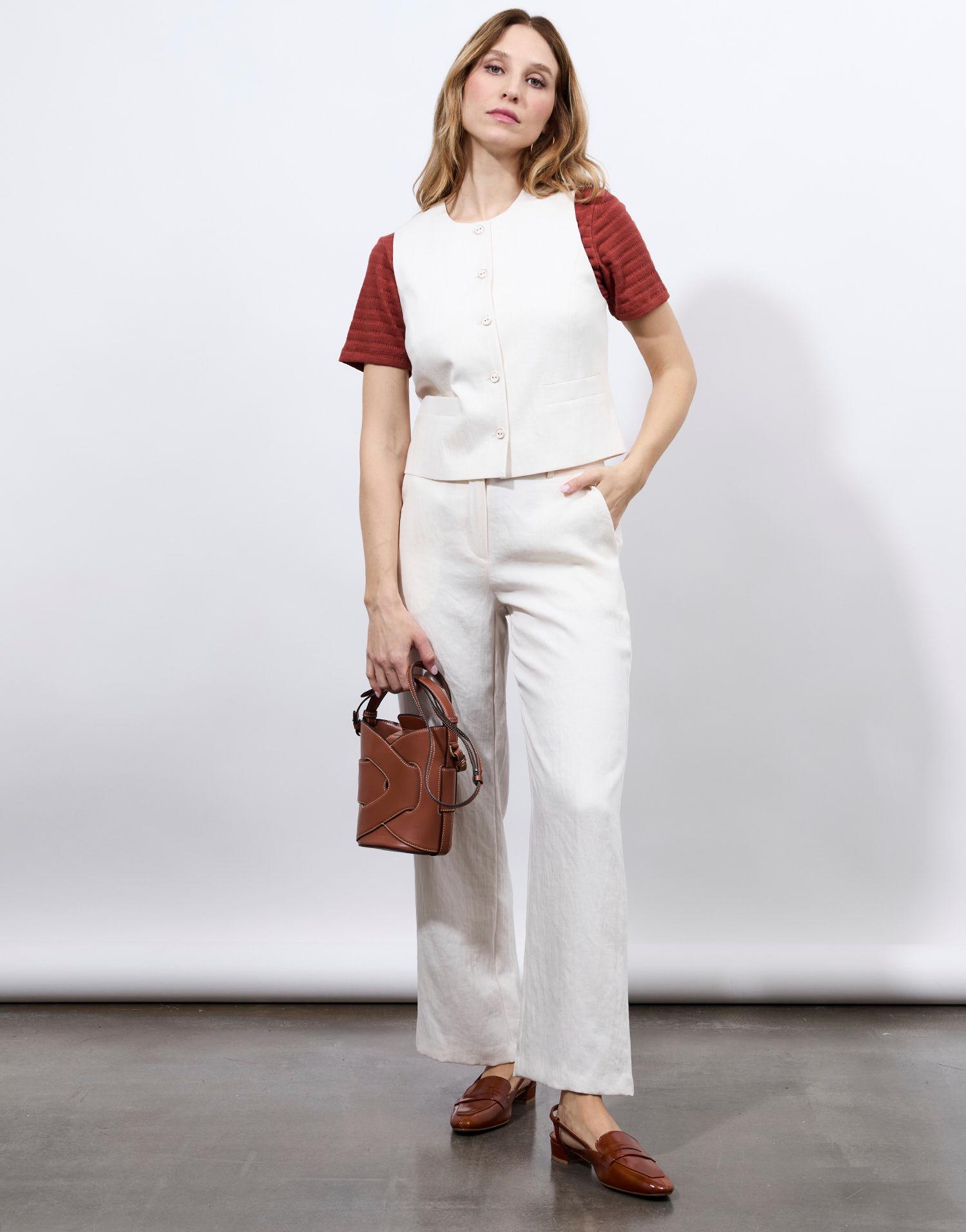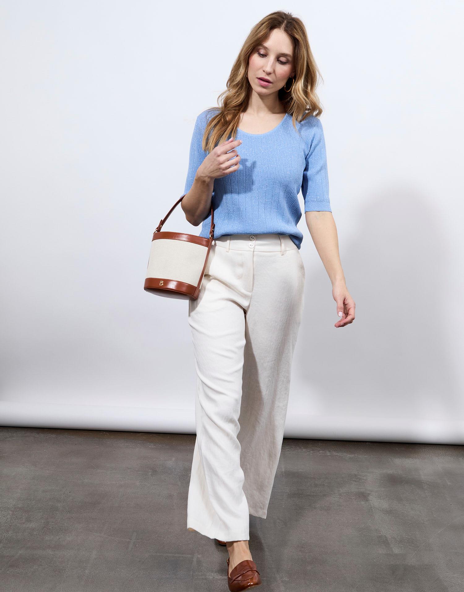 Détails produit : Pantalon long large uni, large. Couleur : BLANC