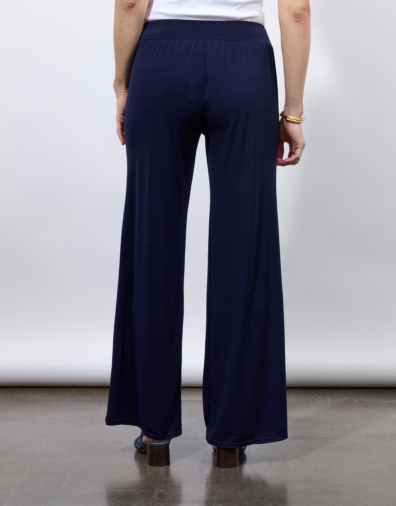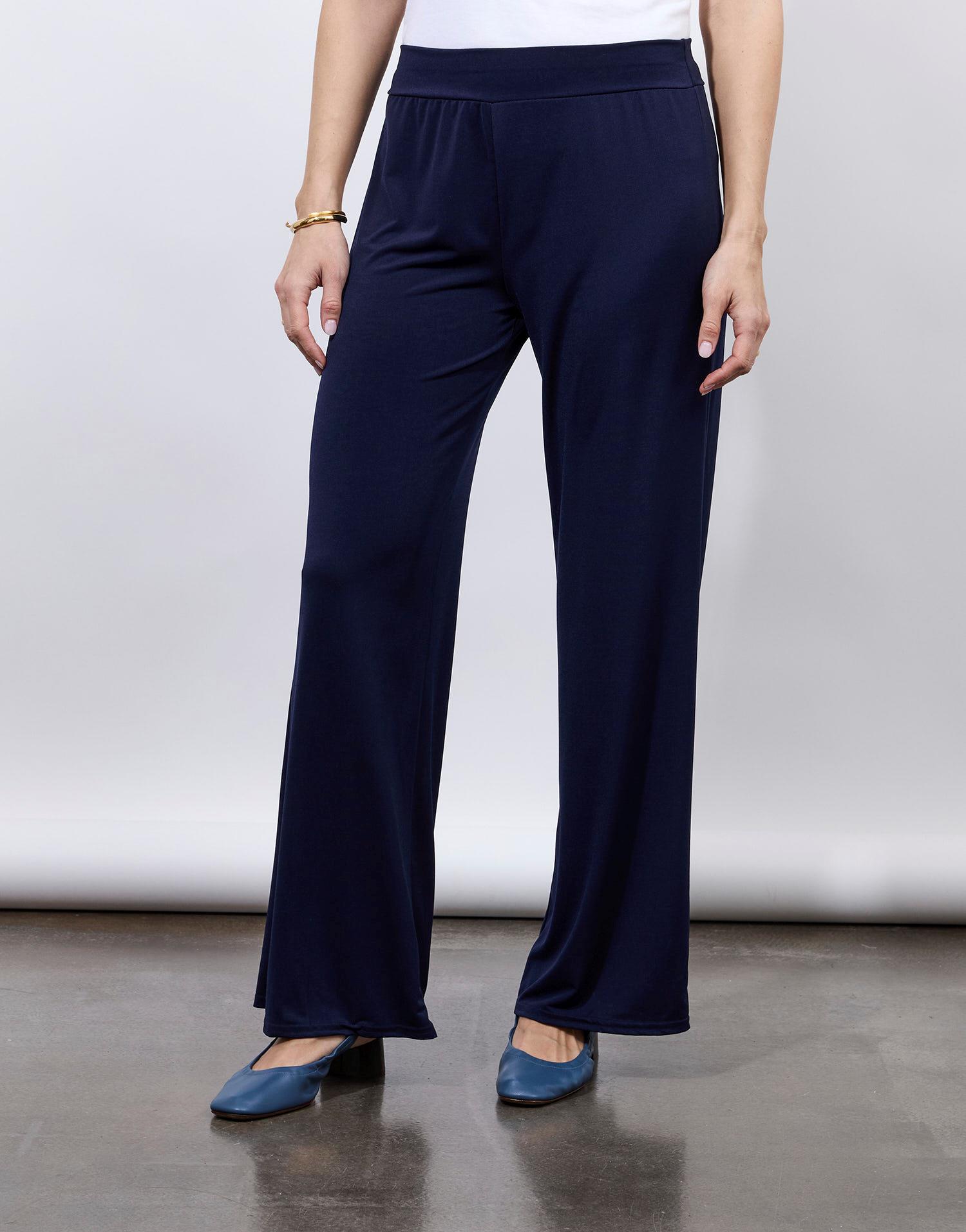 Détails produit : Pantalon long large uni, large. Couleur : MARINE