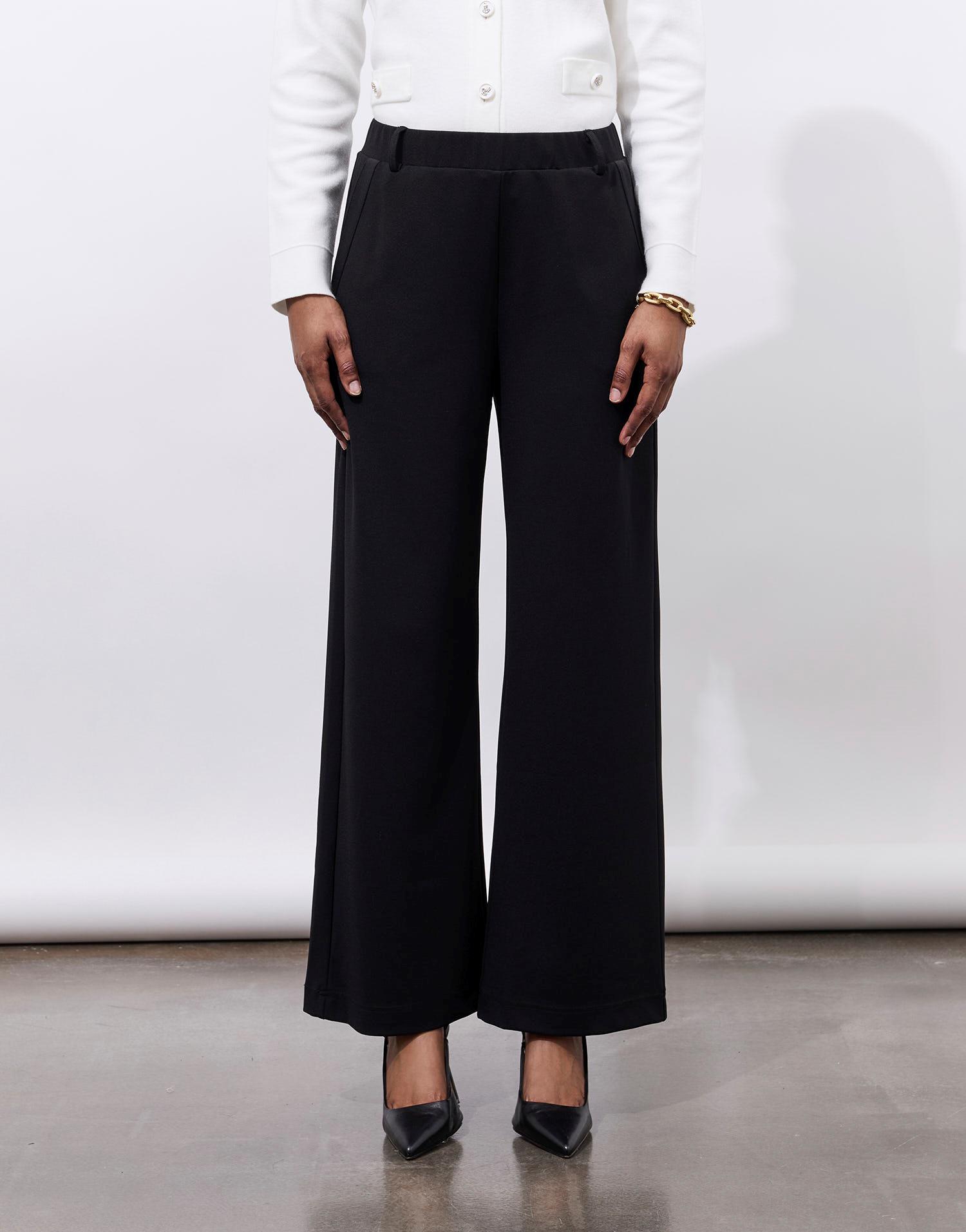 Détails produit : Pantalon long large unie, large, taille élastiquée et poches italiennes . Couleur : NOIR