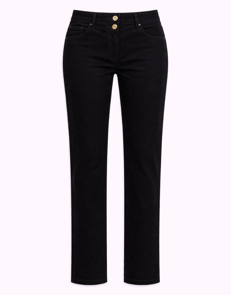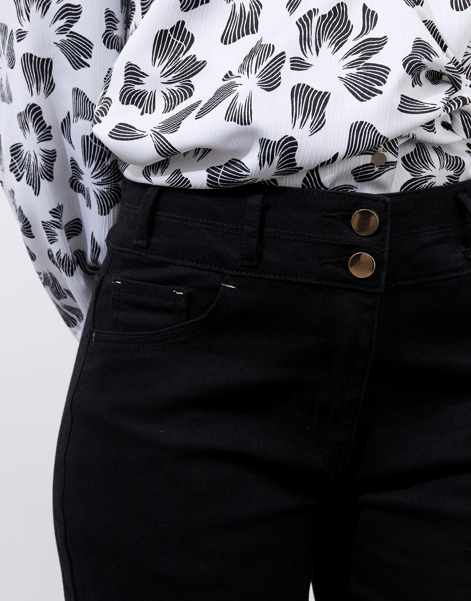 Détails produit : Pantalon long uni, fermeture 2 boutons et 5 poches. Couleur : NOIR