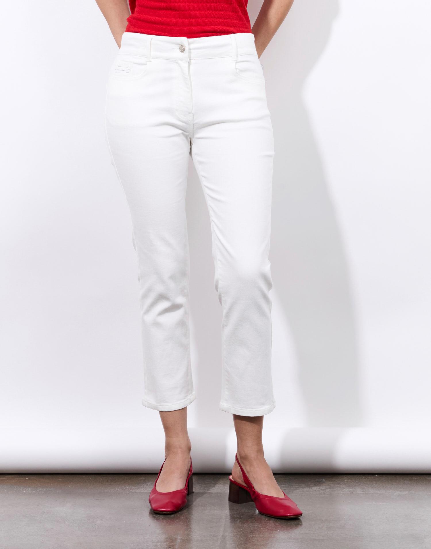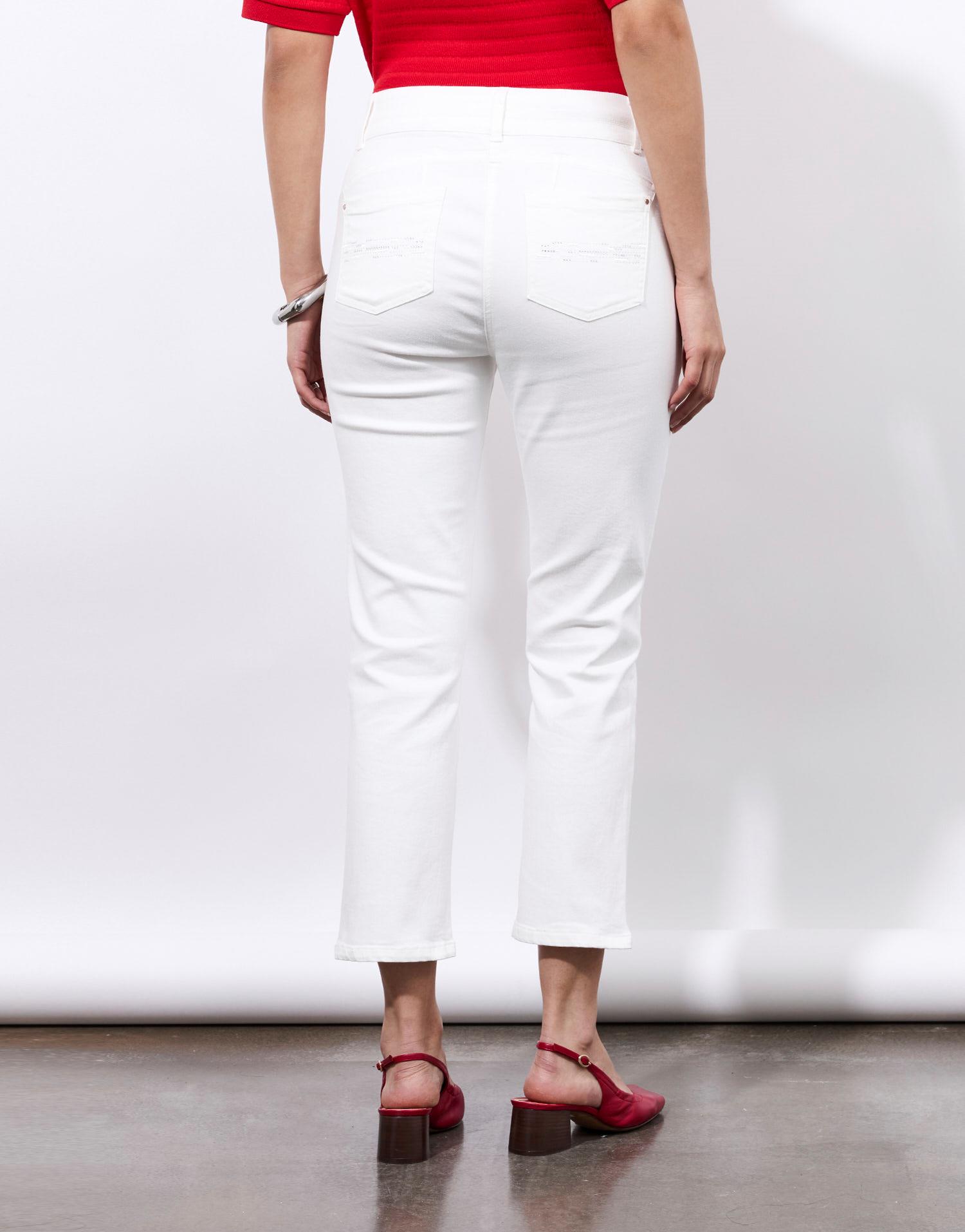 Détails produit : Pantalon pantacourt slim uni, slim, 5 poches et broderies. Couleur : BLANC
