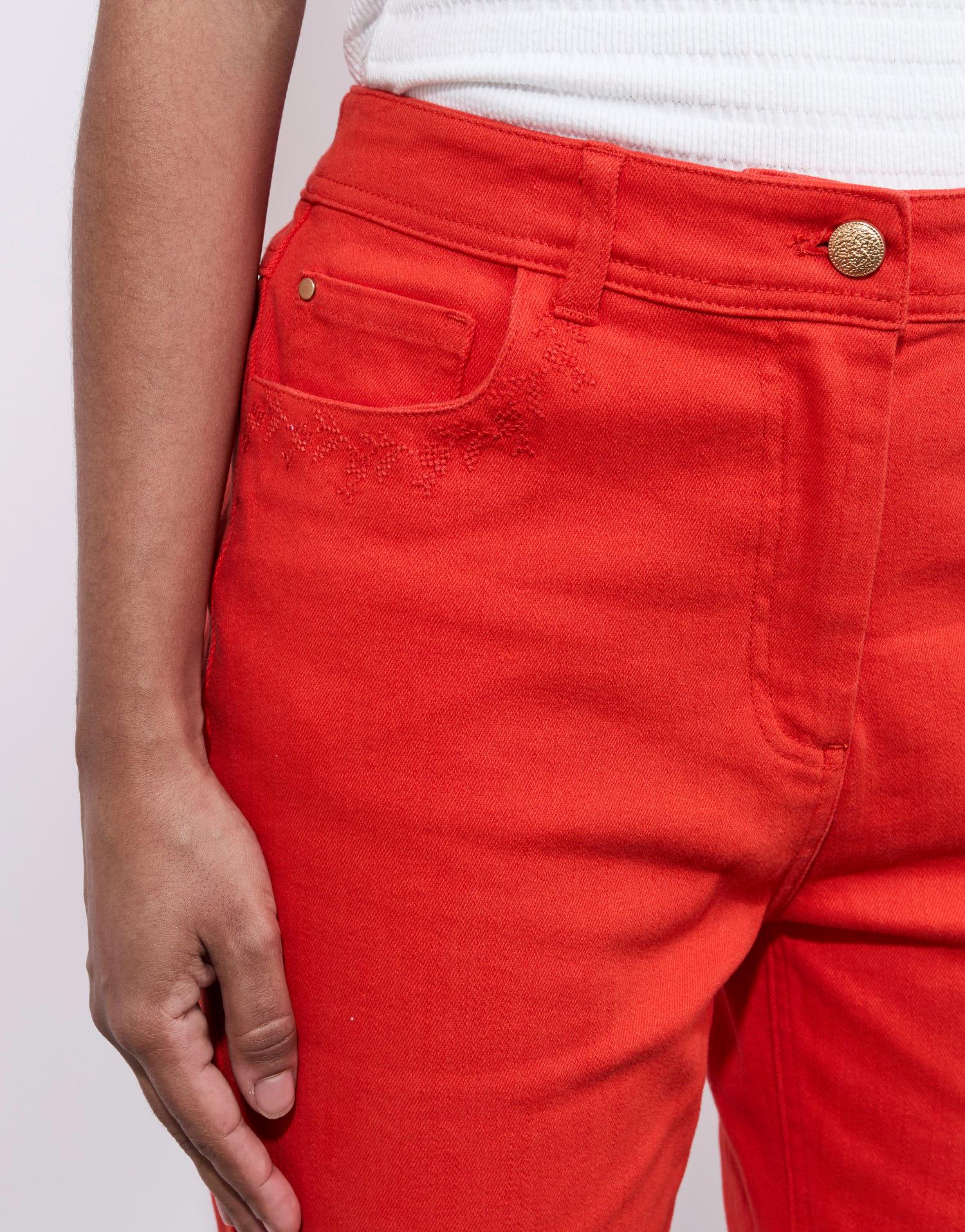 Détails produit : Pantalon pantacourt uni, 5 poches. Couleur : ORANGE