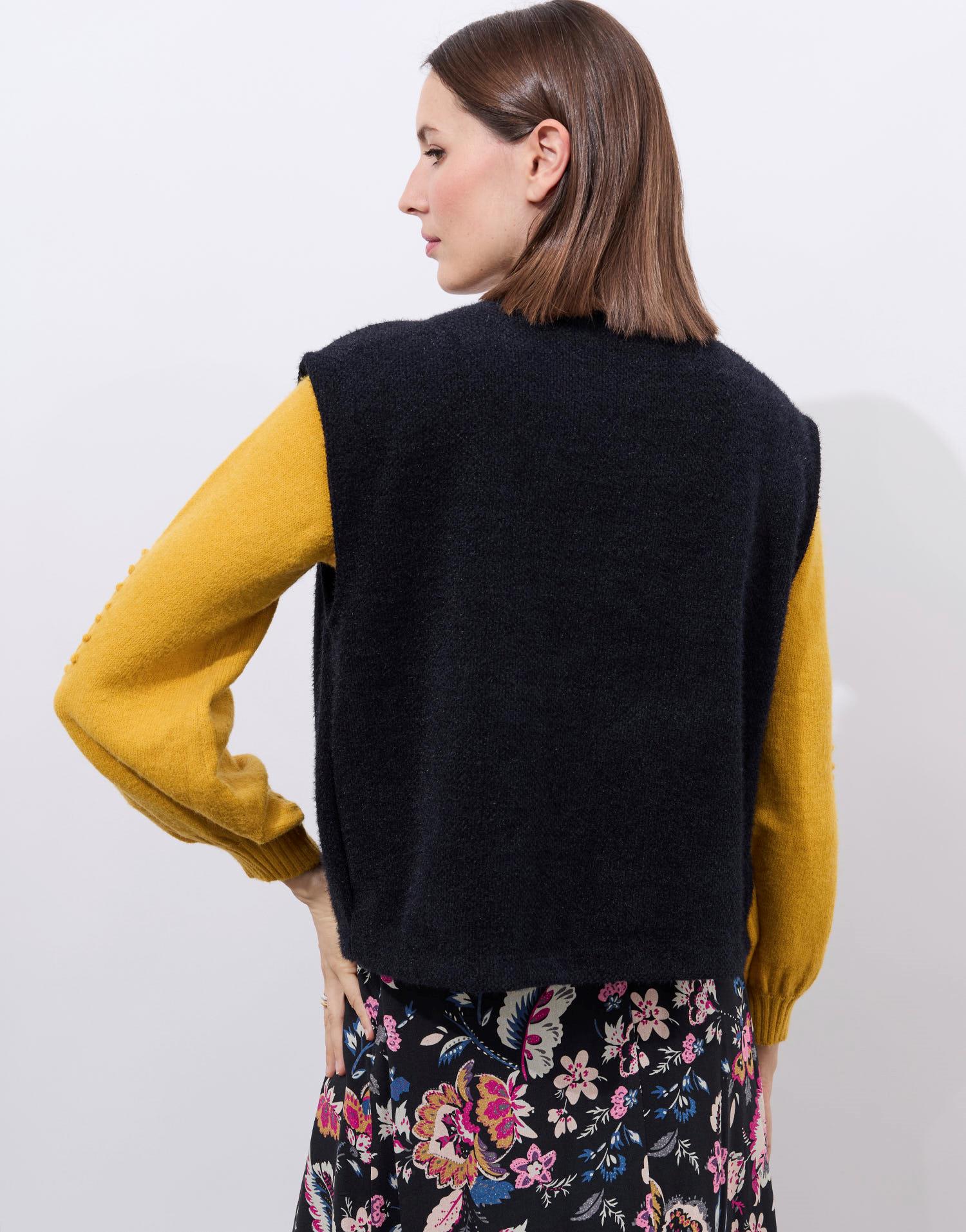 Détails produit : Gilet court uni, encolure arrondie et sans manches. Couleur : NOIR