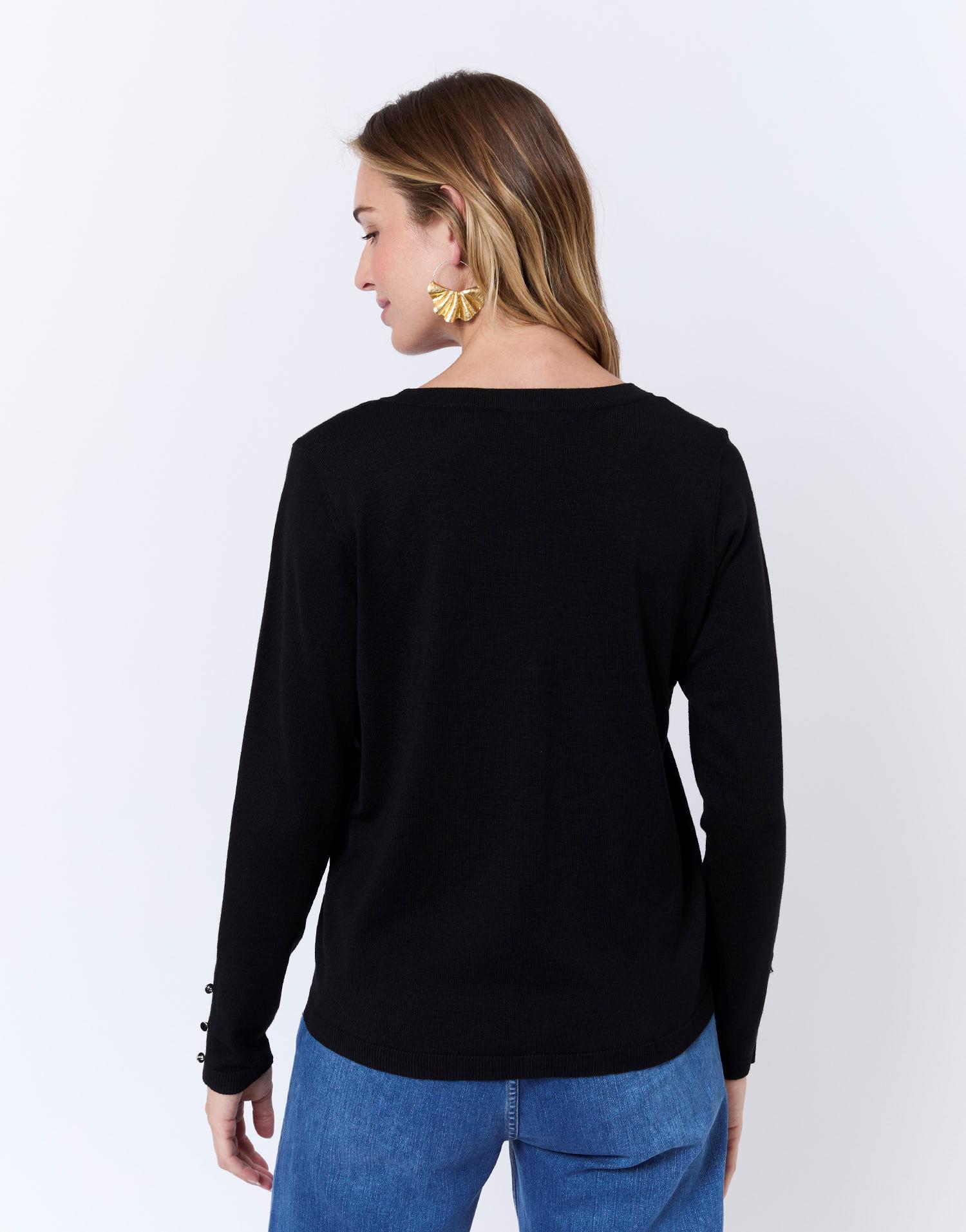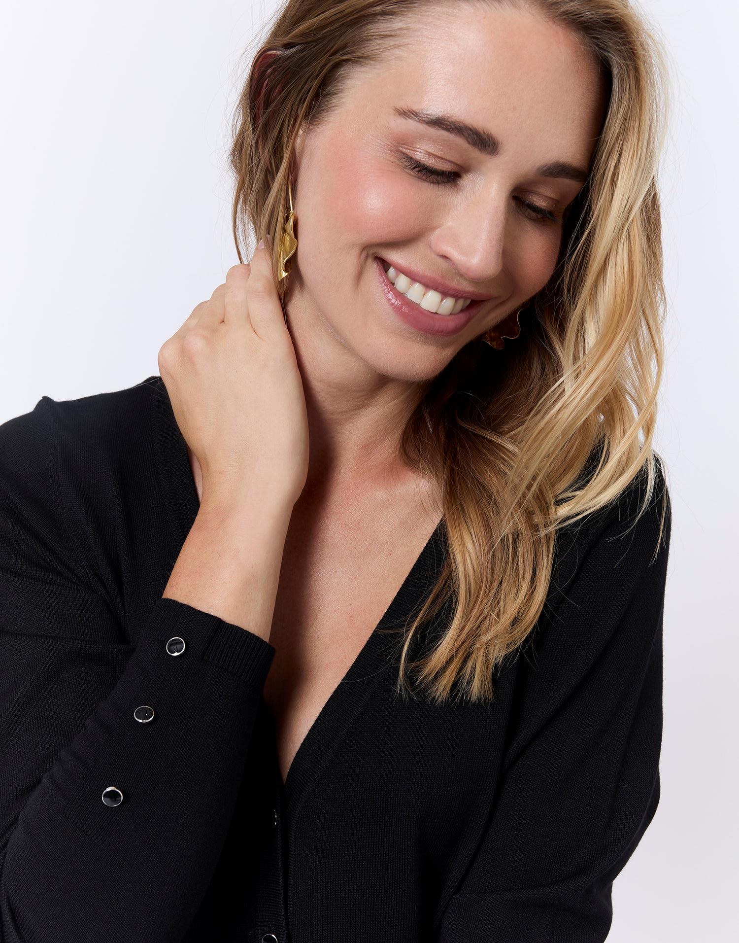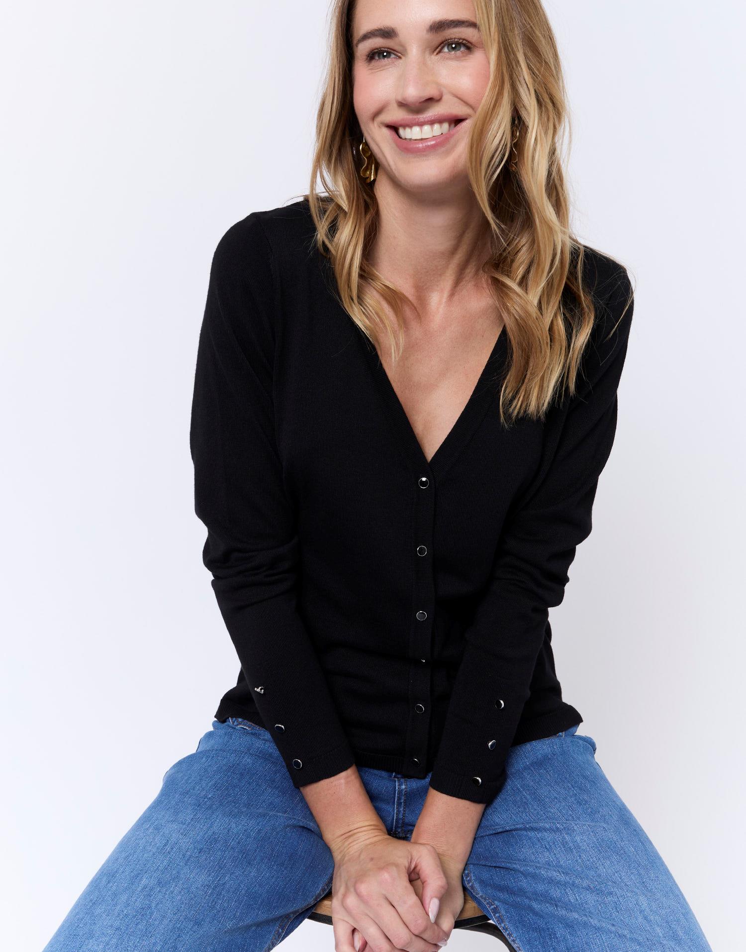 Détails produit : Gilet uni, fermeture à boutons, decolleté en V et manches longues. Couleur : NOIR