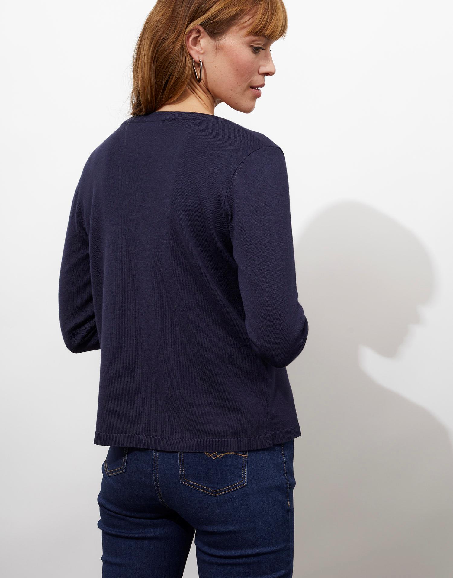 Détails produit : Gilet uni, fermeture à boutons, decolleté en V et manches longues. Couleur : MARINE