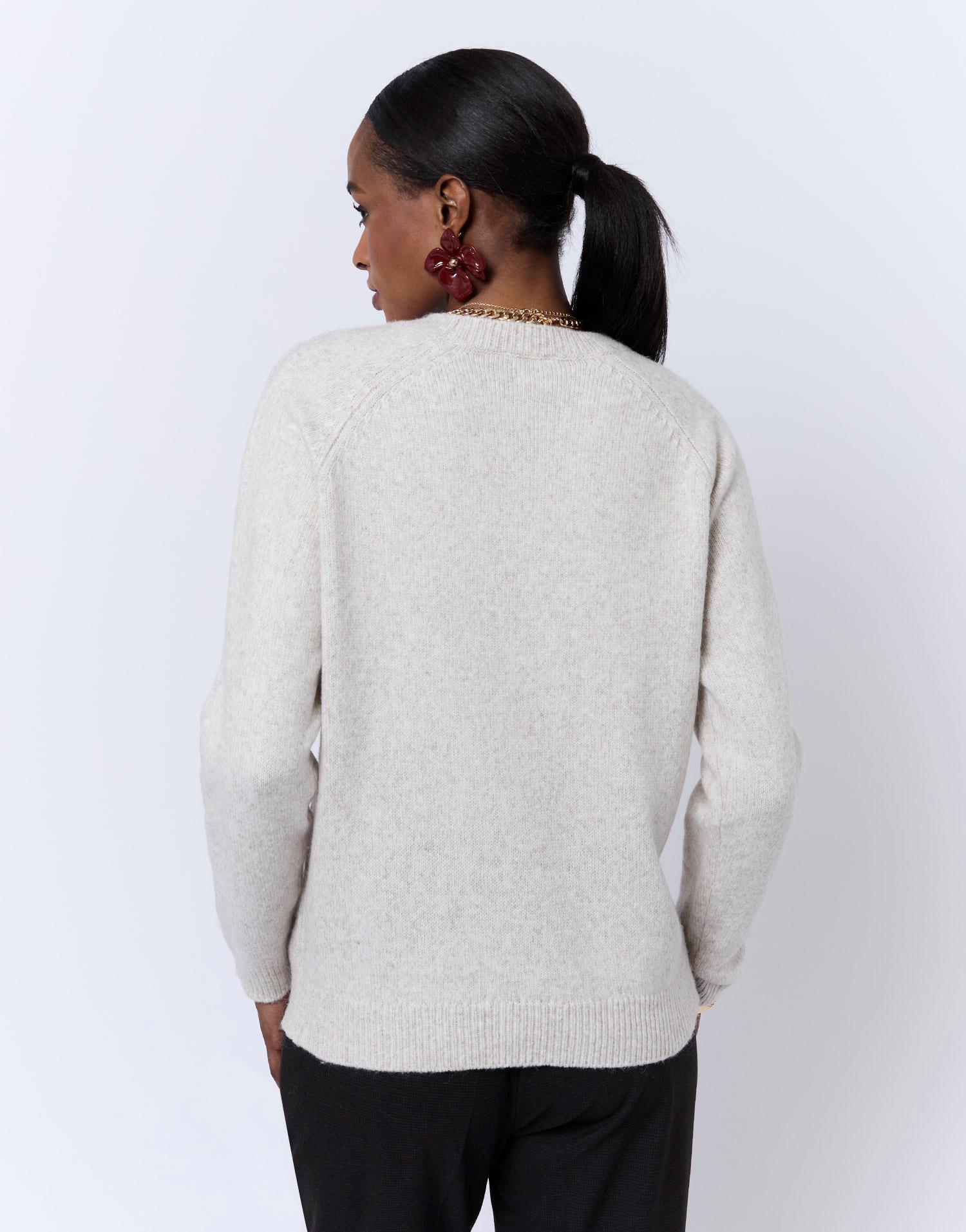 Détails produit : Pull épais en mélange laine uni, Ras du cou, tricotage fantaisie et manches longues. Couleur : BEIGE