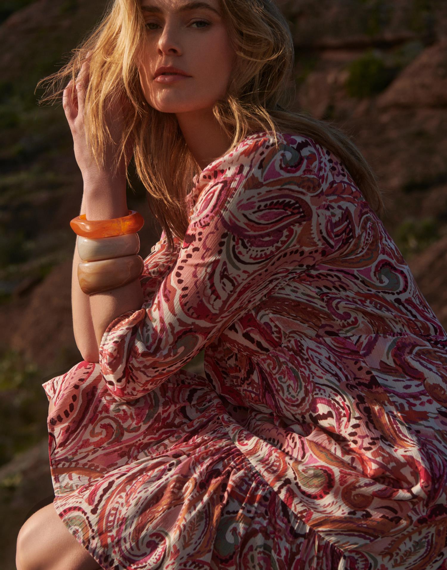 Détails produit : Robe courte imprimée, housse et decolleté en V. Couleur : ROSE