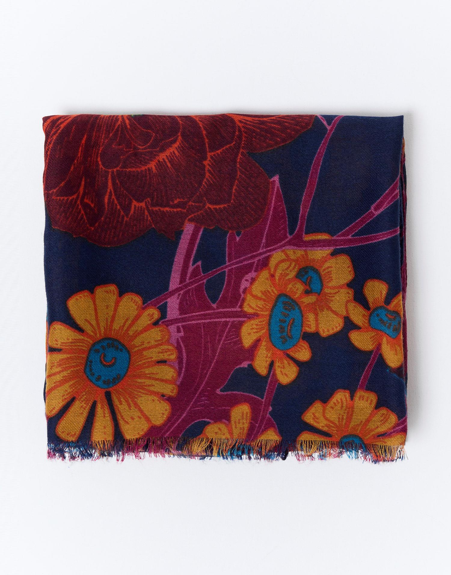 Détails produit : Foulard imprimé à fleurs Couleur : ORANGE