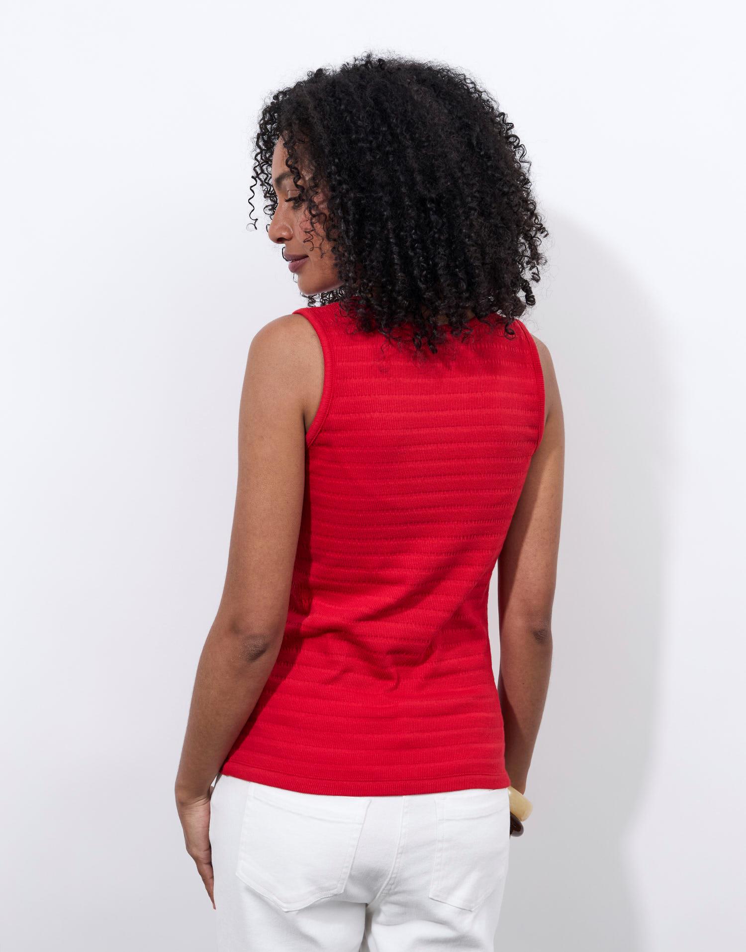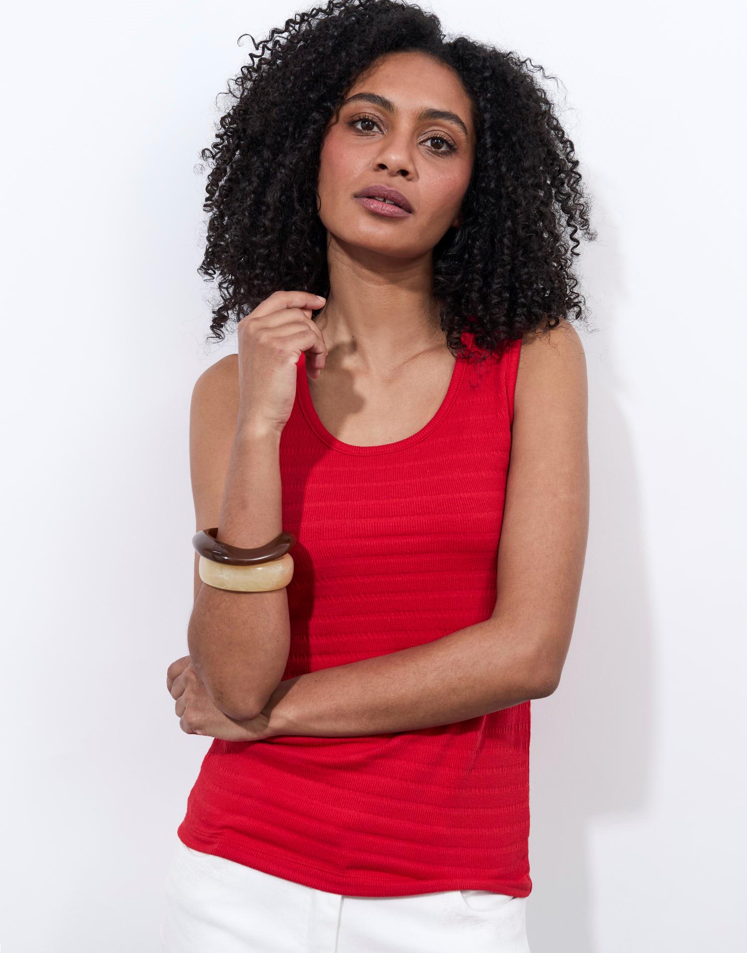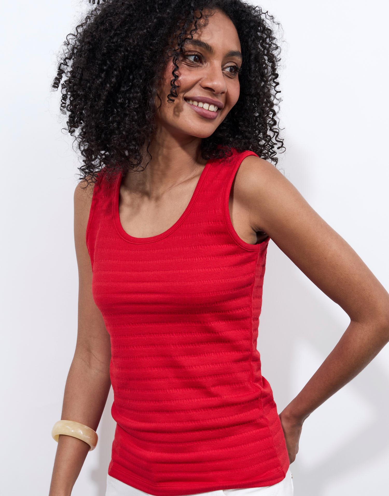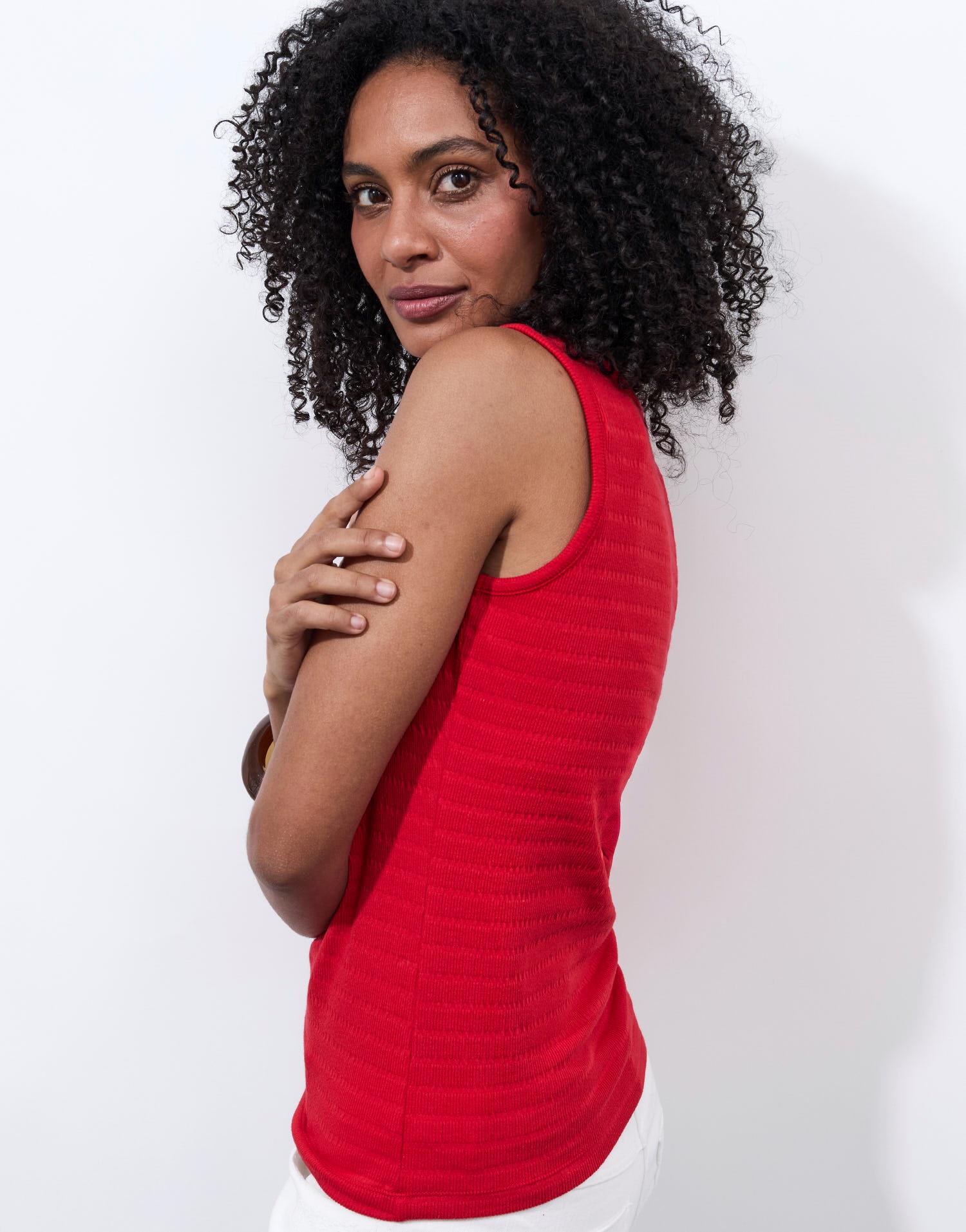 Détails produit : Débardeur en mélange coton uni, encolure arrondie. Couleur : ROUGE