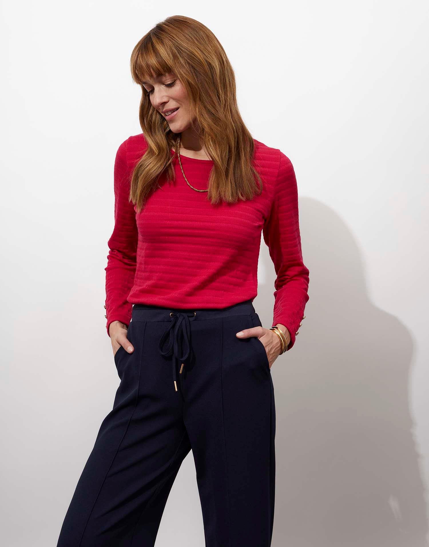 Détails produit : T-Shirt manches longues uni, encolure arrondie. Couleur : FUCHSIA