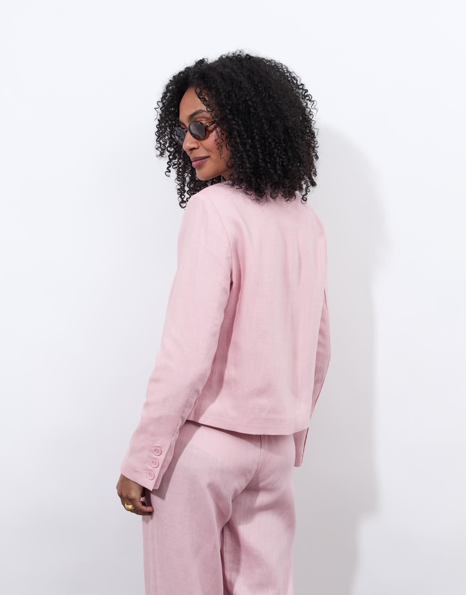 Détails produit : veste chemise unie, forme droite et encolure arrondie. Couleur : ROSE PALE