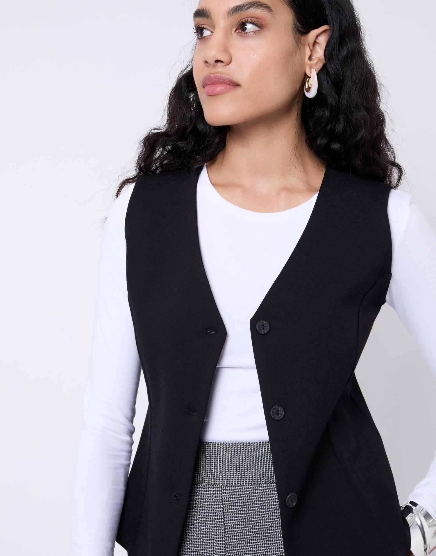 Détails produit : Gilet court uni, sans col. Couleur : NOIR
