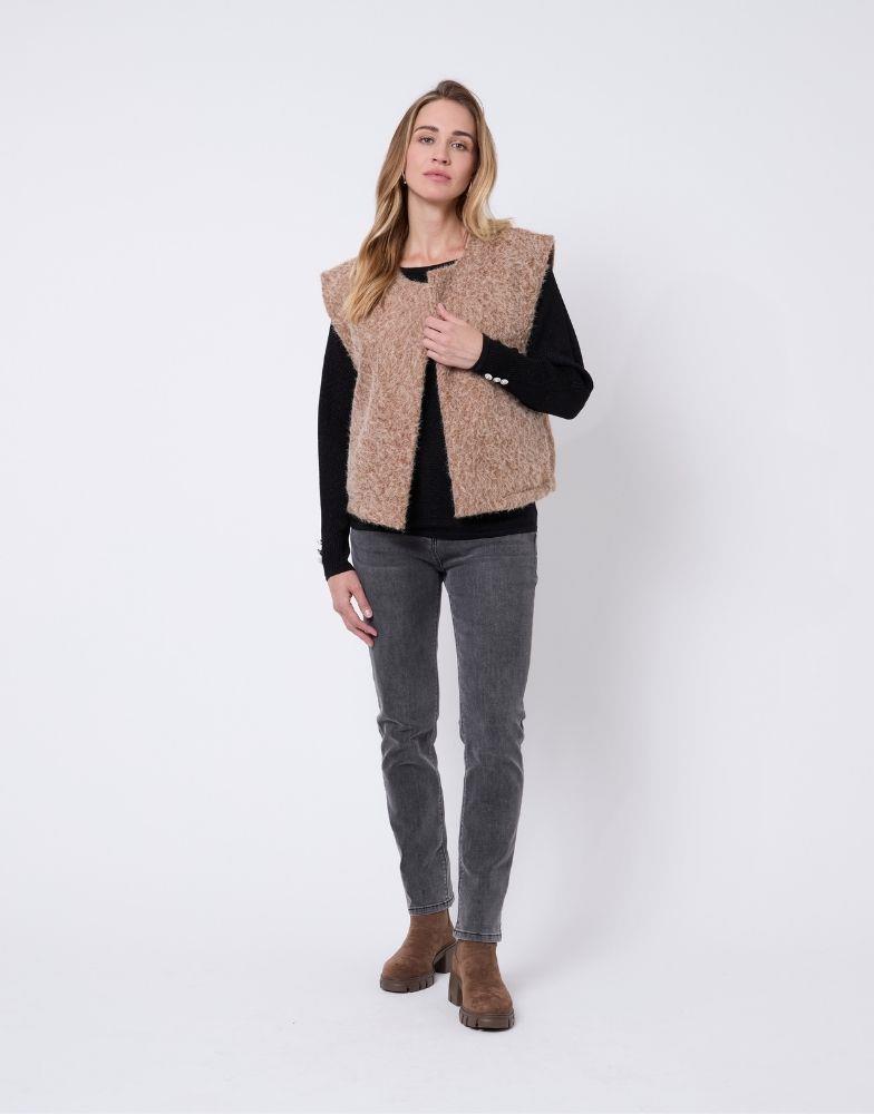 Détails produit : Gilet uni, sans col. Couleur : CAMEL